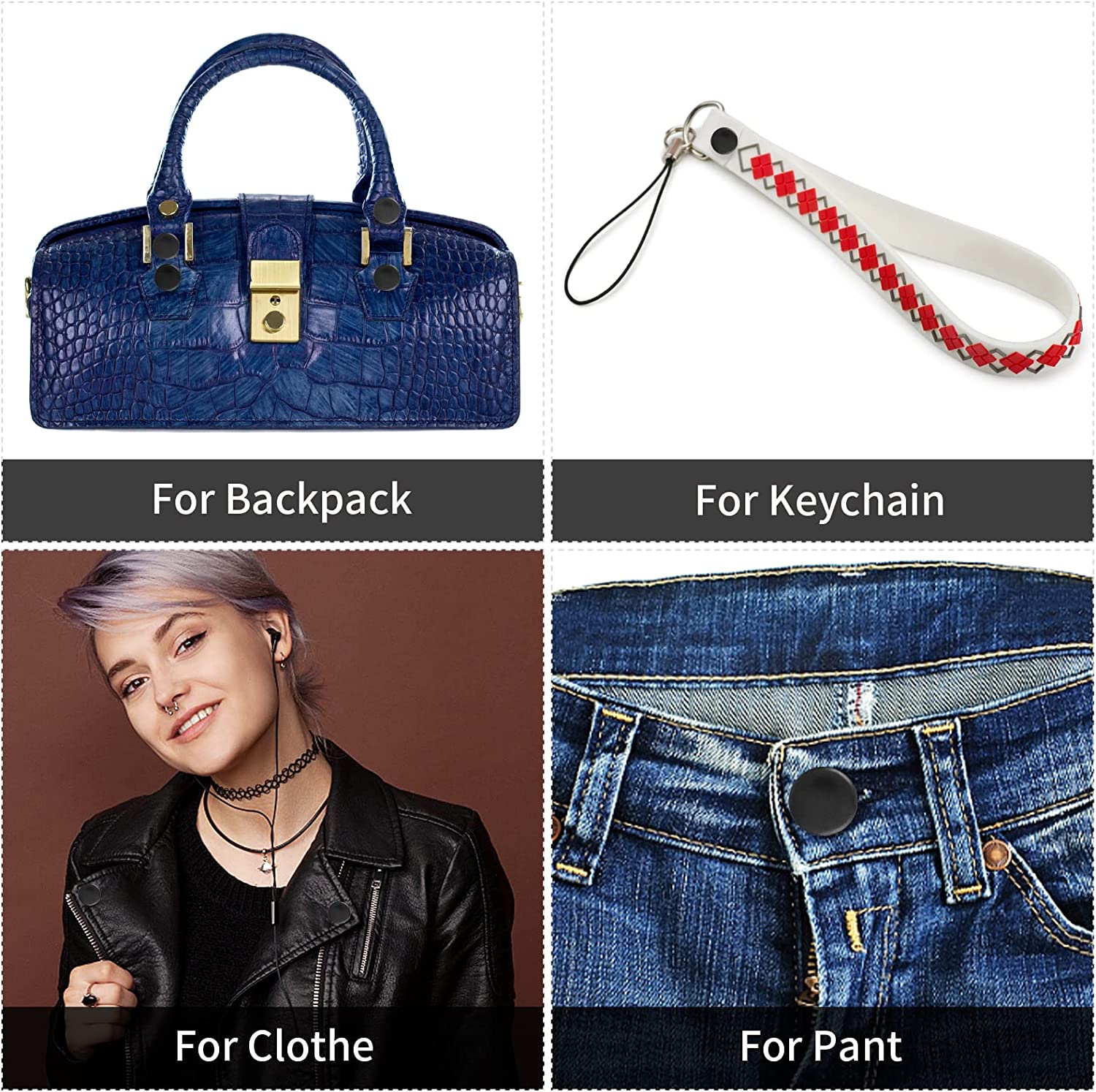 Widely Applications: The snap button can provide effective solutions for repairing fabrics, such as wallets, suitcases, clothing, shoes, belts, backpack, watch wristbands, leather crafts which are made of leather, canvas, nylon fabric, and so on