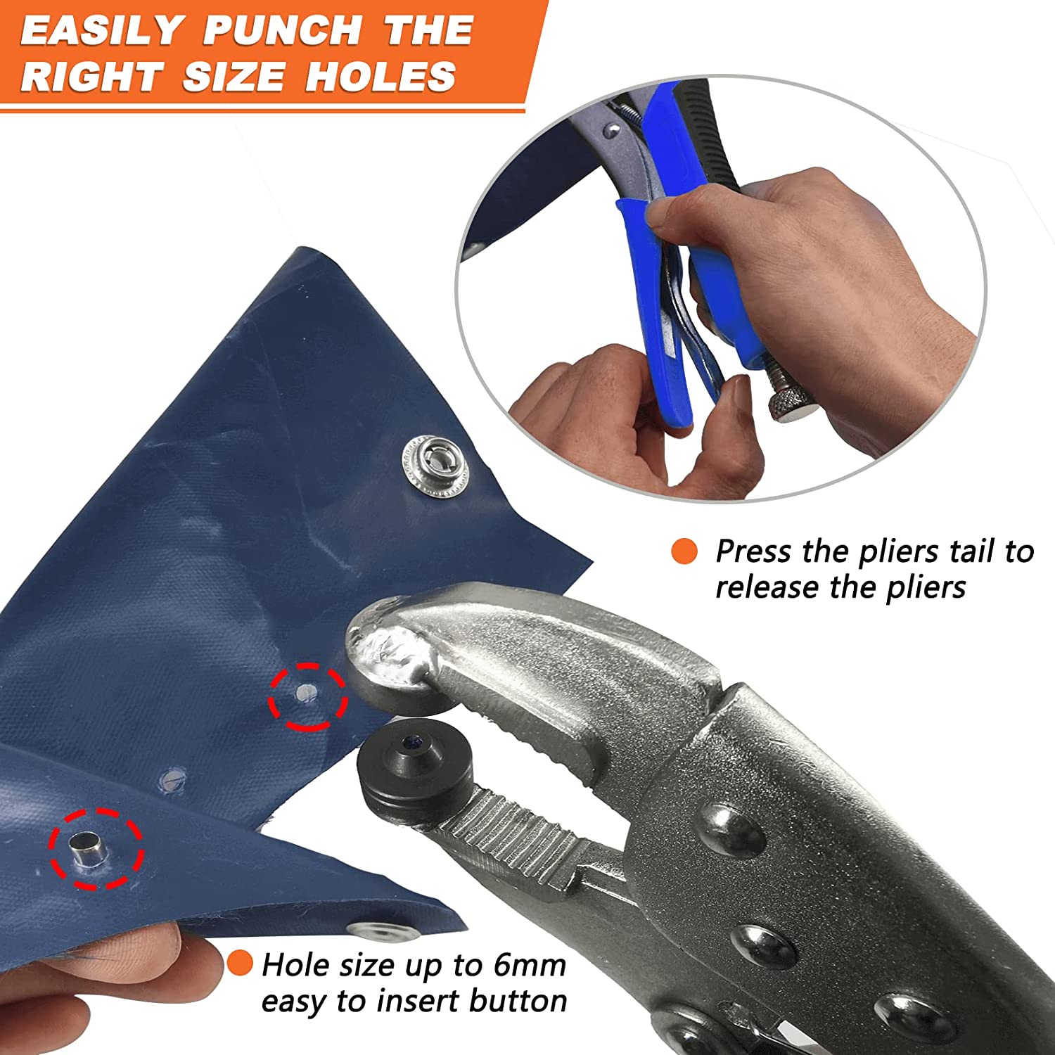 [Upgrade Die Holder]The jaw of snap pliers uses the force of attraction to keep the dies securely in place while snapping.Widely used for installing/repairing metal snaps on leather/boat canvas/carpet/tarp/covers/furniture, etc.