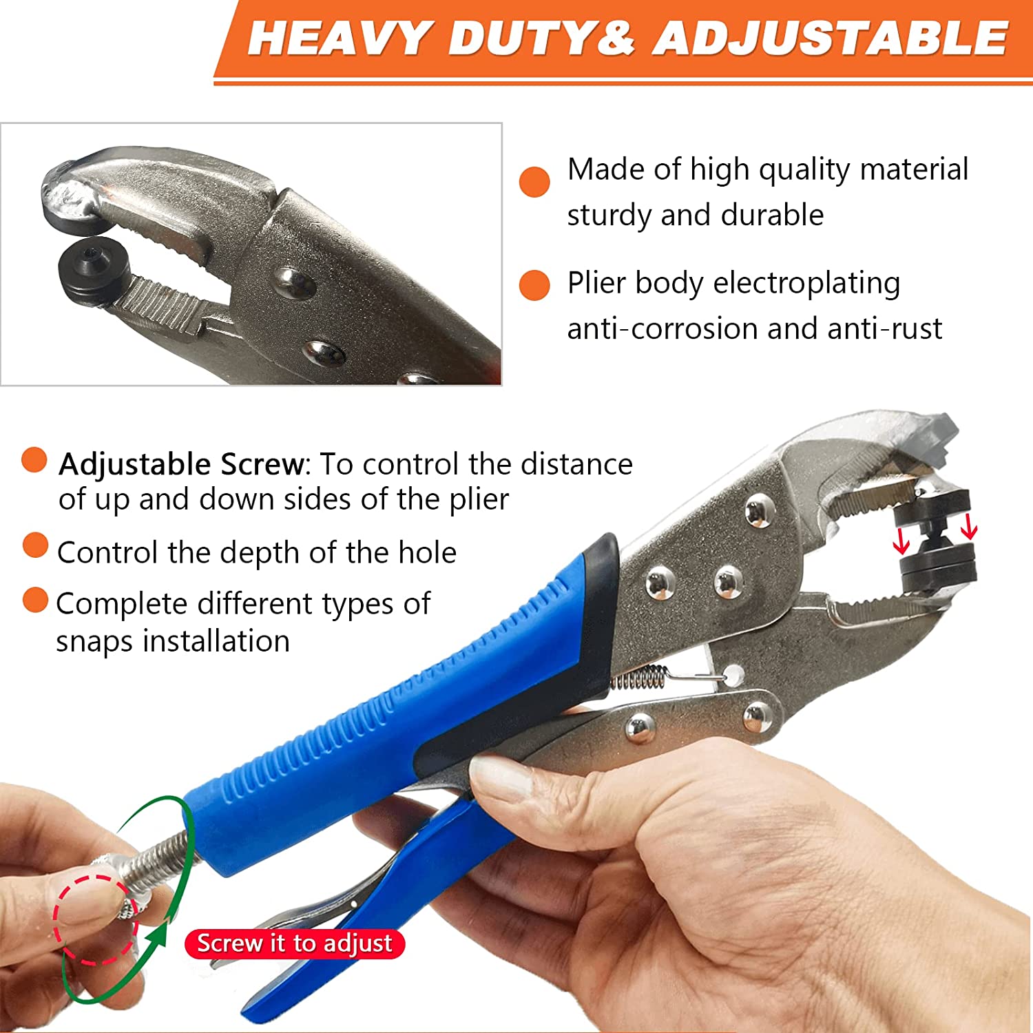 [Precise Welding, Die Holder Correct Alignment]Highly calibrated and adjustable parts to ensure the jaws are accurately and fully closed, the plier system gives you better leverage to finish snaps installation.