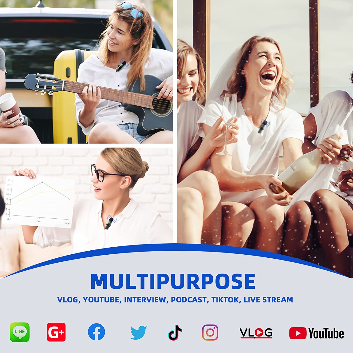 Wireless creative freedom: The microphone advanced 2.4GHz wireless transmission technology can stably cover the transmission distance of 65 feet, letting you freely create indoors or outdoors and transmit in real-time. Ideal for Bloggers, Journalists, Mukbang, Fitness coaches, Teachers, and Office people.