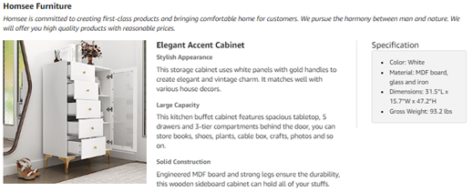 【Sturdy & Durable】This white storage cabinet is crafted from engineered MDF board, particle board, iron and glass. The thick boards with melamine coated surface is sleek and easy cleaning, the drawers equip sliders to ensure smoothly opening and closing.
