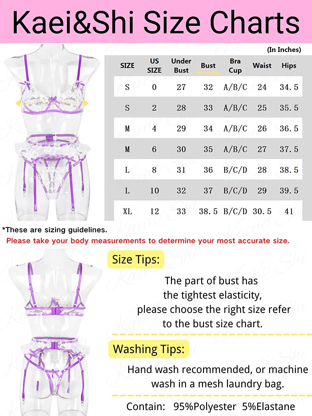 ✿Style: This underwire ruffle lingerie set with flower embroidered lace overlay and satin bow decor can enhance femininity and outline sexy breast lines.
