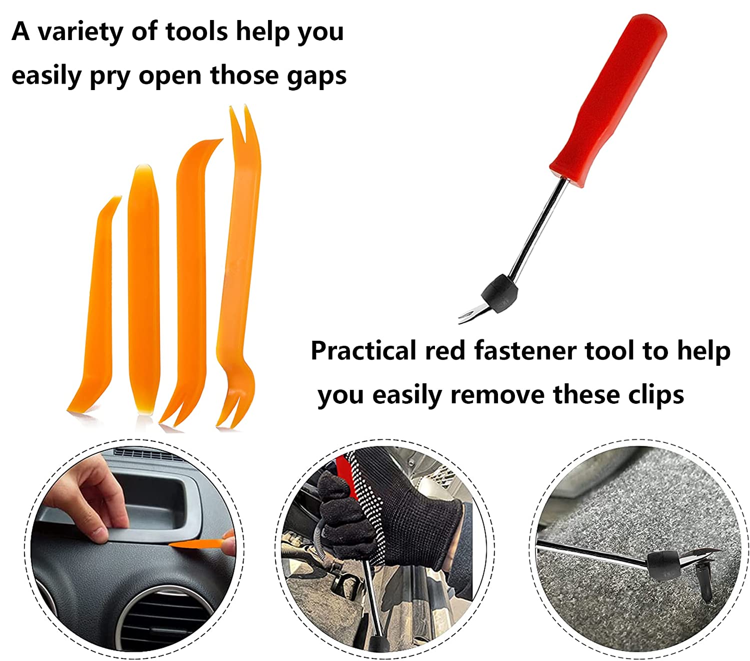 【HIGH QUALITY CLIPS AUTOMOTIVE】The plastic rivets and trim removal tool are made of premium nylon material can be used for a long time. Durability will not damage or break easily during use.