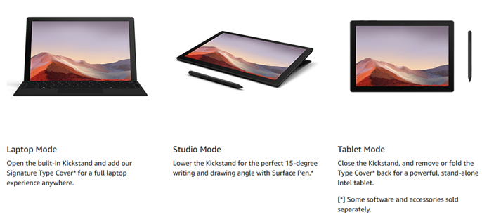 At the office, at home or en route, New Surface Pro 7 adapts to the way you work with laptop-to-tablet versatility. And now, it delivers more power than ever, with a laptop-class Intel Core processor, all-day battery, Instant On, improved graphics, and standby time — plus more multitasking connections, including both USB-C and USB-A ports.