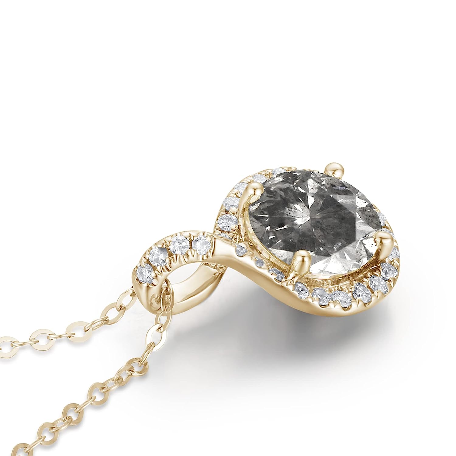 White diamond accent; Solid gold cable chain included