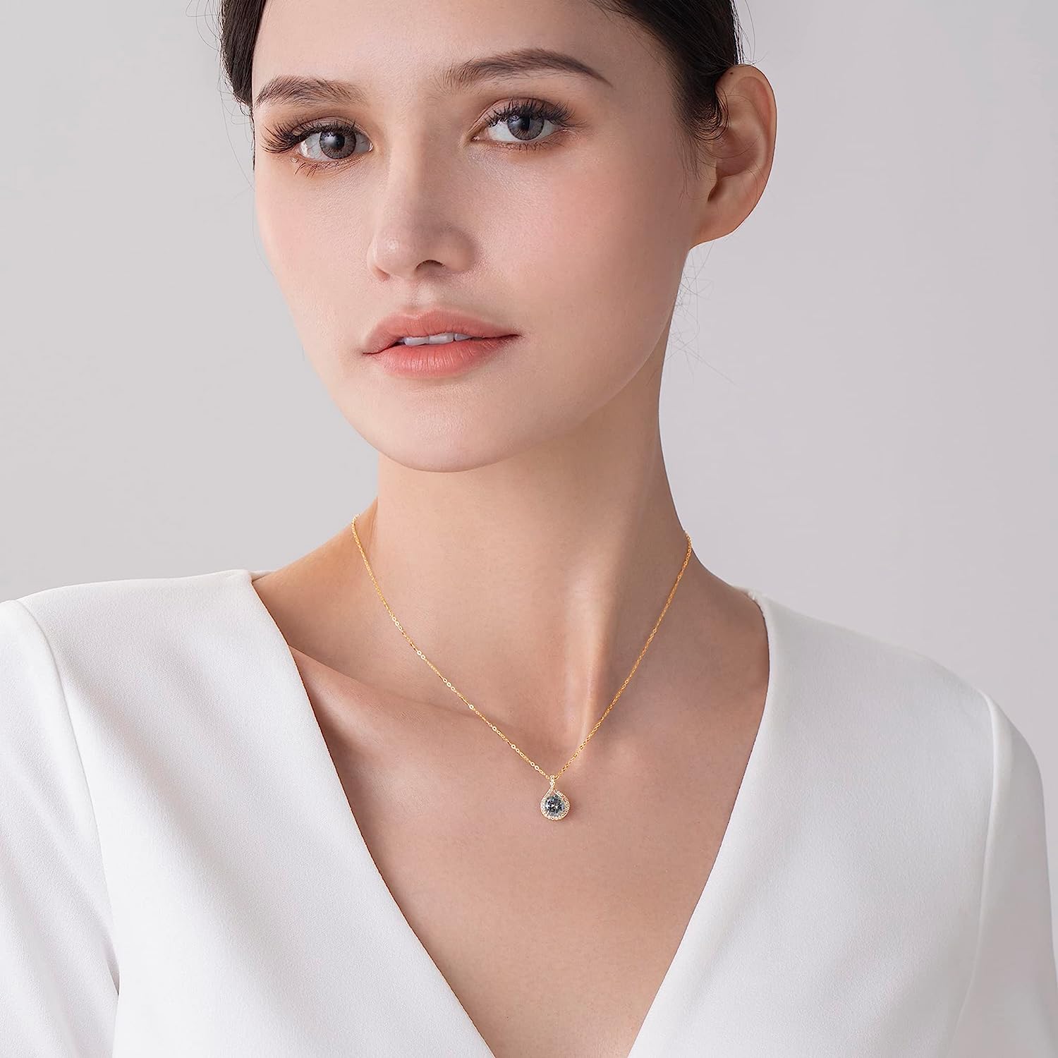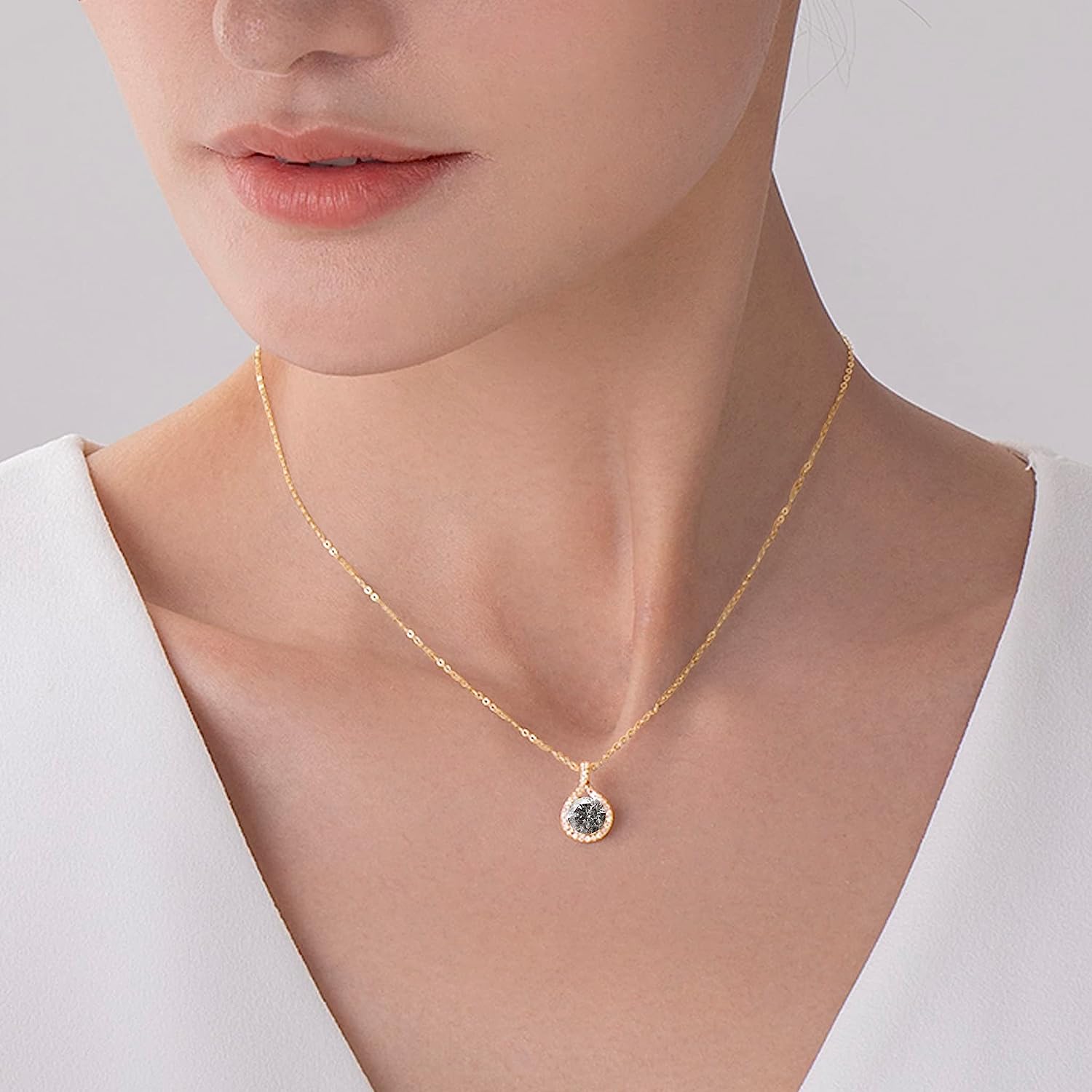 Salt and pepper diamond necklace pendant-Dainty drop layering necklace with chain-Grey galaxy diamond necklace-Alternative April birthstone