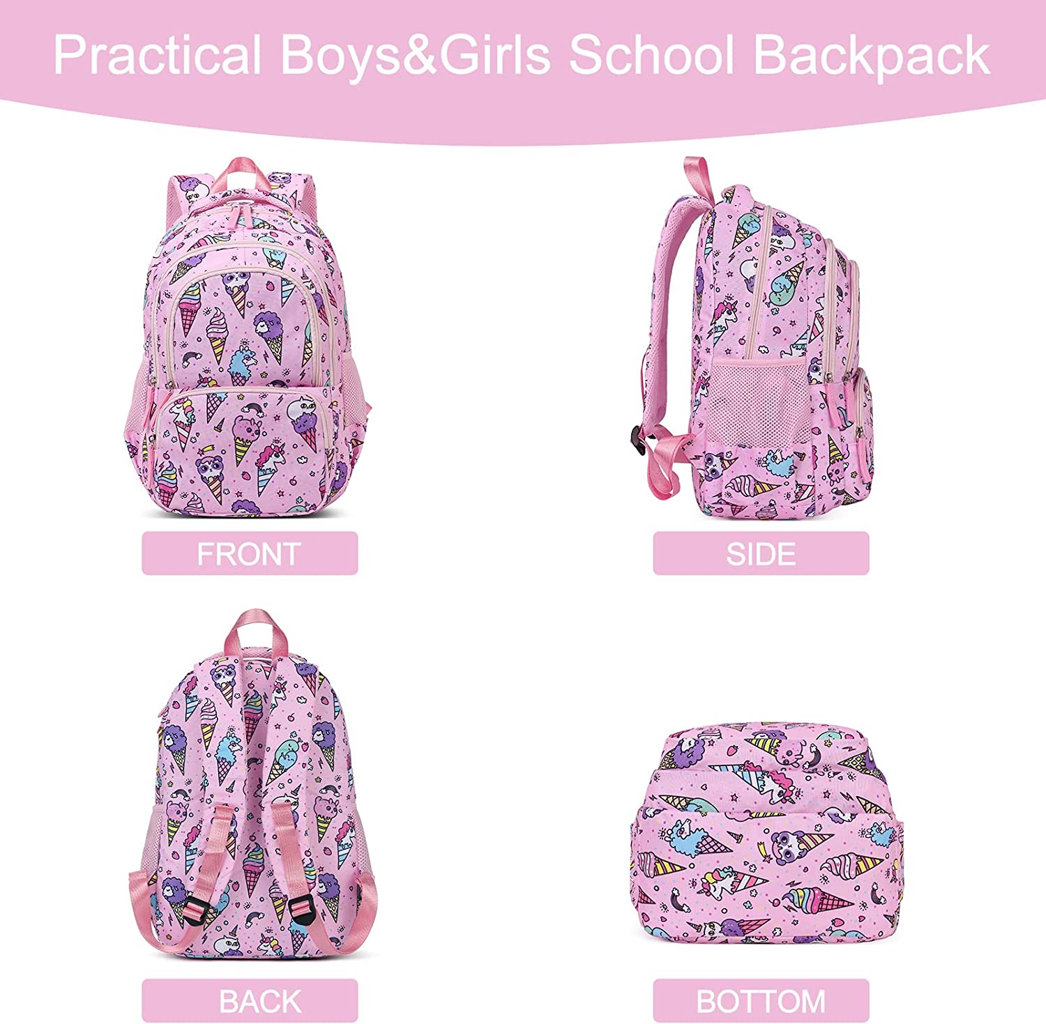 CONVENIENT&LARGE CAPACITY: 15.75 * 12 * 5.12 Inch, the size of girls backpack for elementary is suitable for primary children(6-12 years old are best), the multi-pocket compartment design can hold many items makes the capacity more possible, child can put books, pen cases, lunch boxes, ipad, coats into the elementary school backpack, side pockets can hold umbrellas and water bottles, the large kid backpack for girls allows kids to no longer worry about forgetting things and makes things neat.