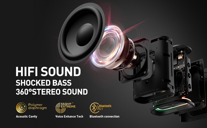 - Hi-Fi STEREO SOUND WITHOUT DISTORTION: Featured Full-range drivers and passive radiators, the wireless speaker delivers powerful 360° stereo sound with enhanced bass, tight mids, and crystal-clear highs. Coupled with an advanced digital signal processor, guaranteed distortion-free sound at any volume.