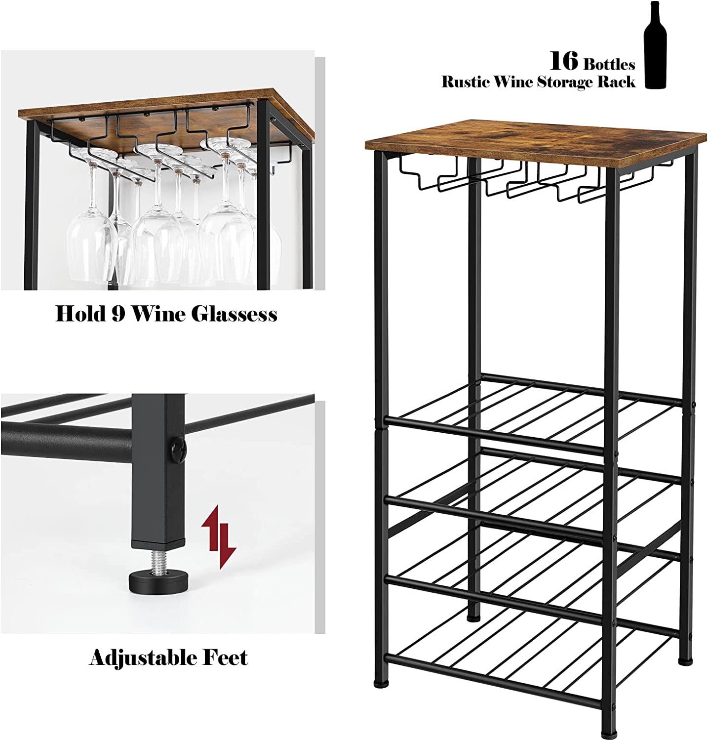 ? 【Multifunctional Wine Rack Table】This wine cabinet is equipped with a storage shelf, 9 glass holders, and 4 tier wine rack for 16 wines, which can meet the needs of your home wine bottle storage. The home wine cabinet is not only suitable for storing wine bottles, drinks, wine glasses, fruit plates, or ice buckets, but it can also display decorations, books, and other accessories.