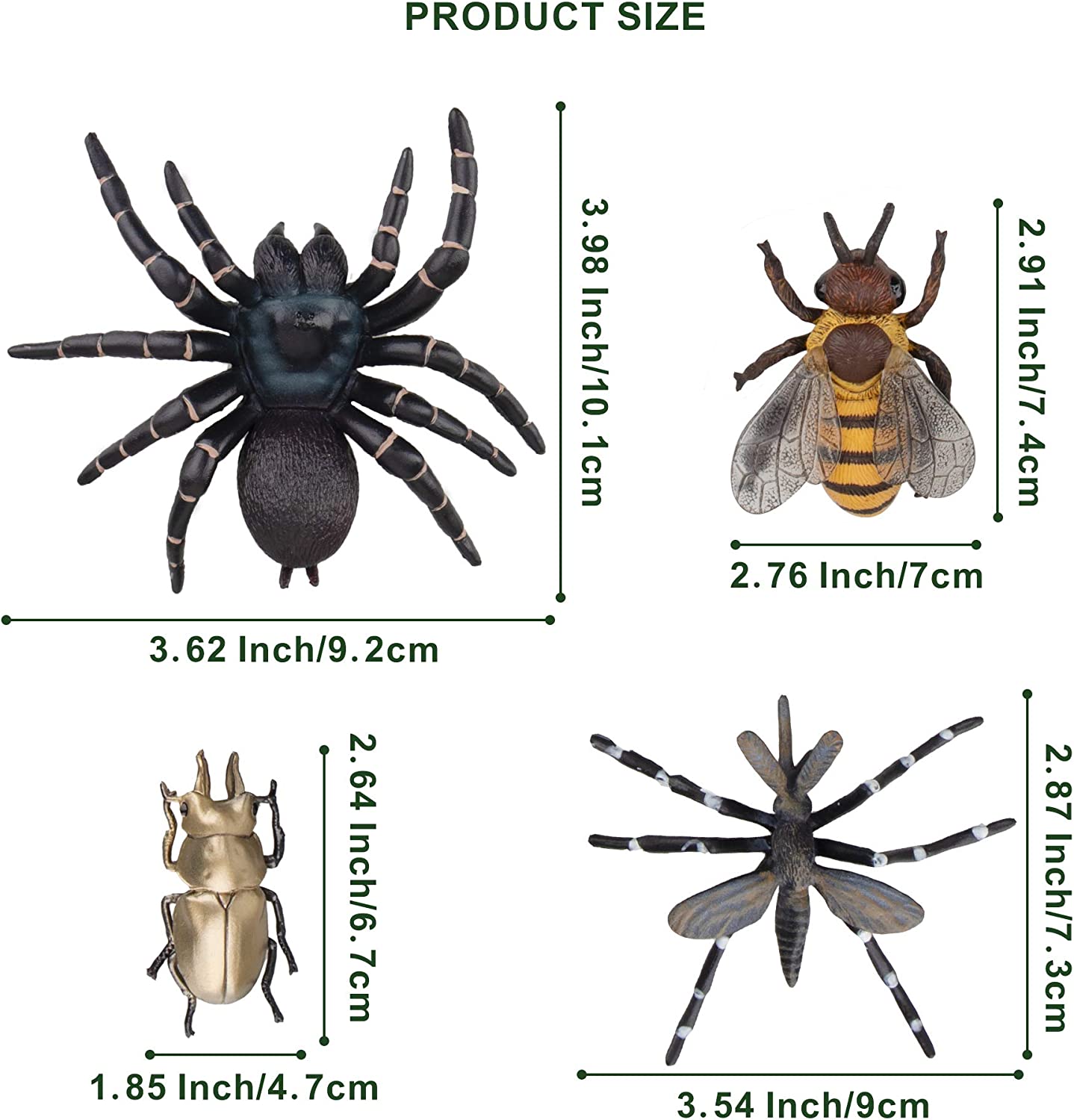 - ✔ REALISTIC EMULATIONAL DETAILS - This bug animal figures set was made by hand painted with high realistically detailed appearance, cute face and childish eyes. Their uniquely molded textures and richly painted details make the animals colorful and vivid. And all the animal figures stands up very well, they do not fall over. Kids would like to spend more time to observe and play with them.