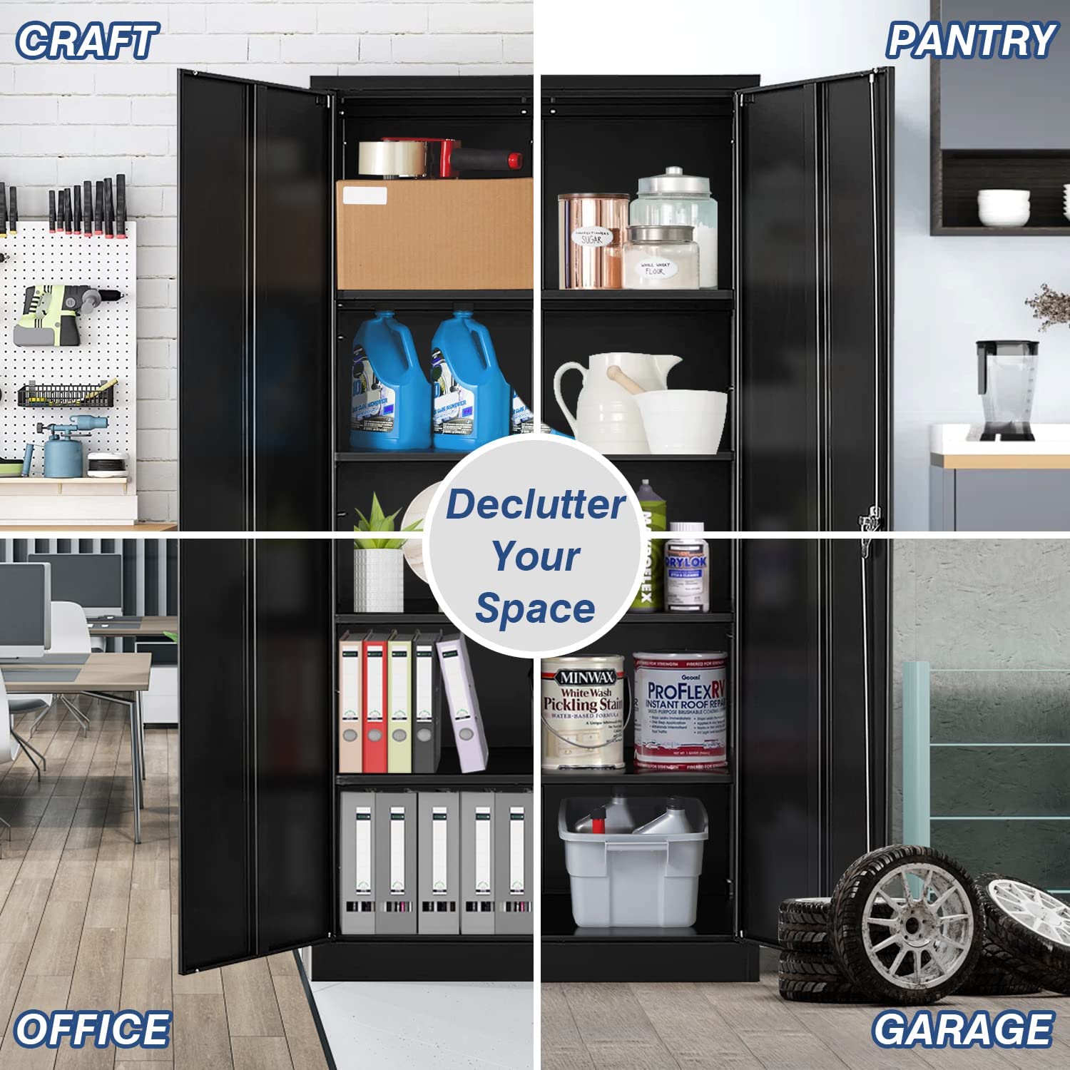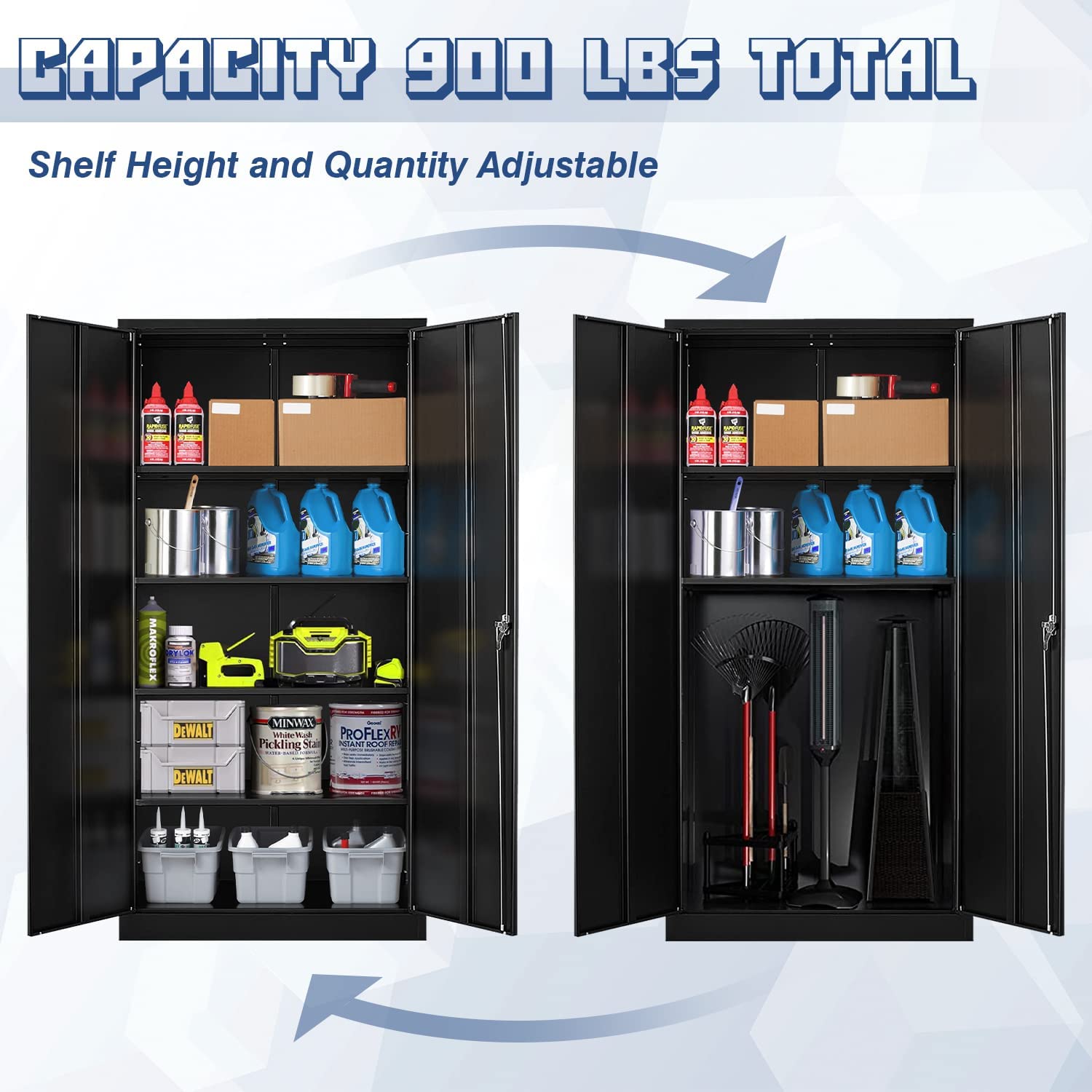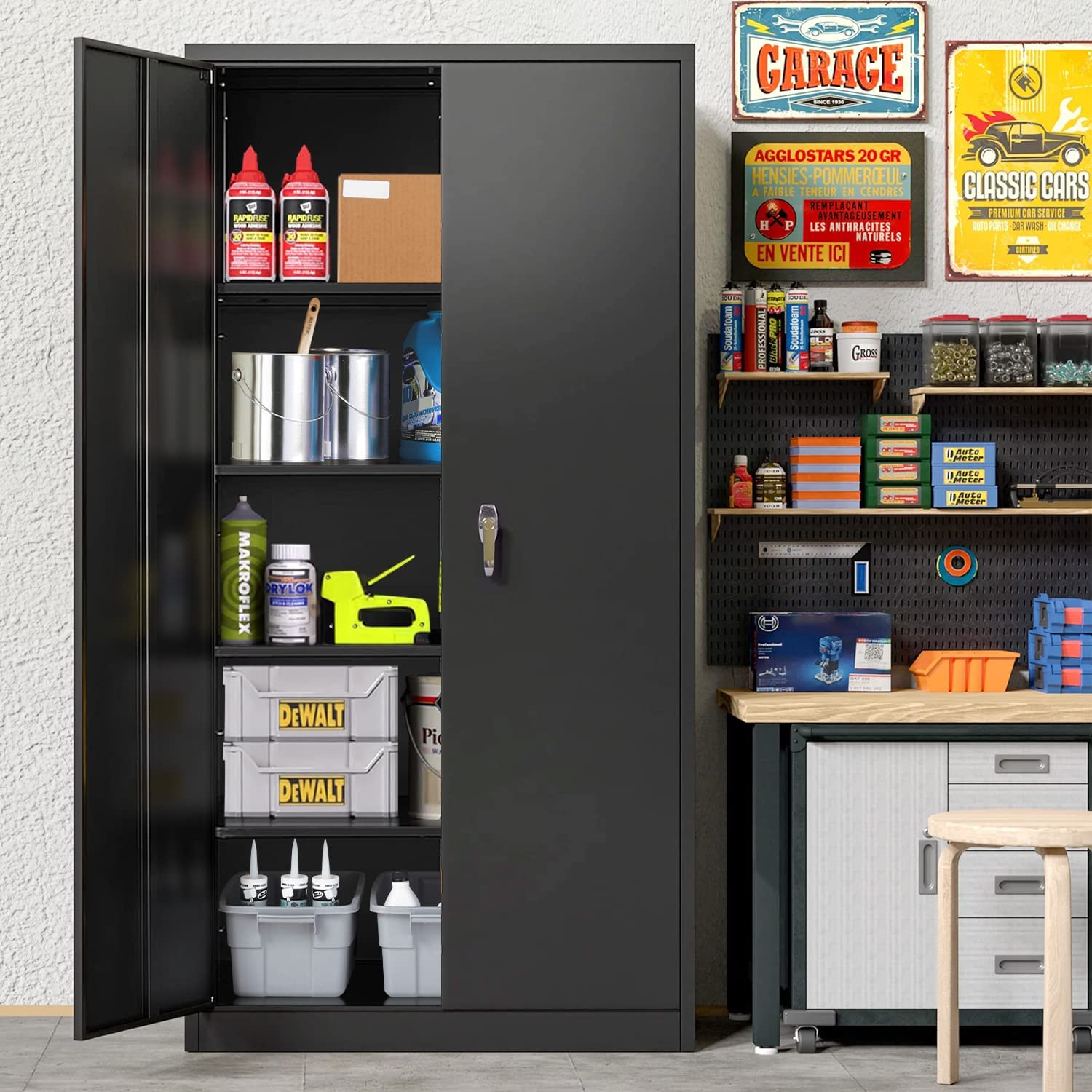 Greenvelly Locking Cabinet, Metal Garage Storage Cabinet with Doors and Shelves for Home Office, Black Steel Tool Cabinet with Lock, Lockable Large Utility Locker with Keys for Warehouse, Pantry Room
