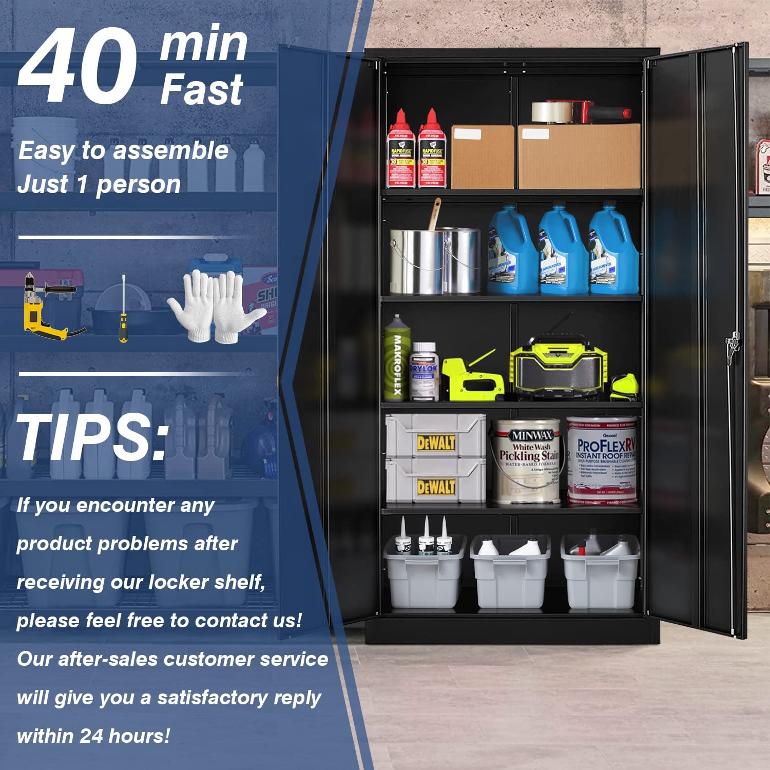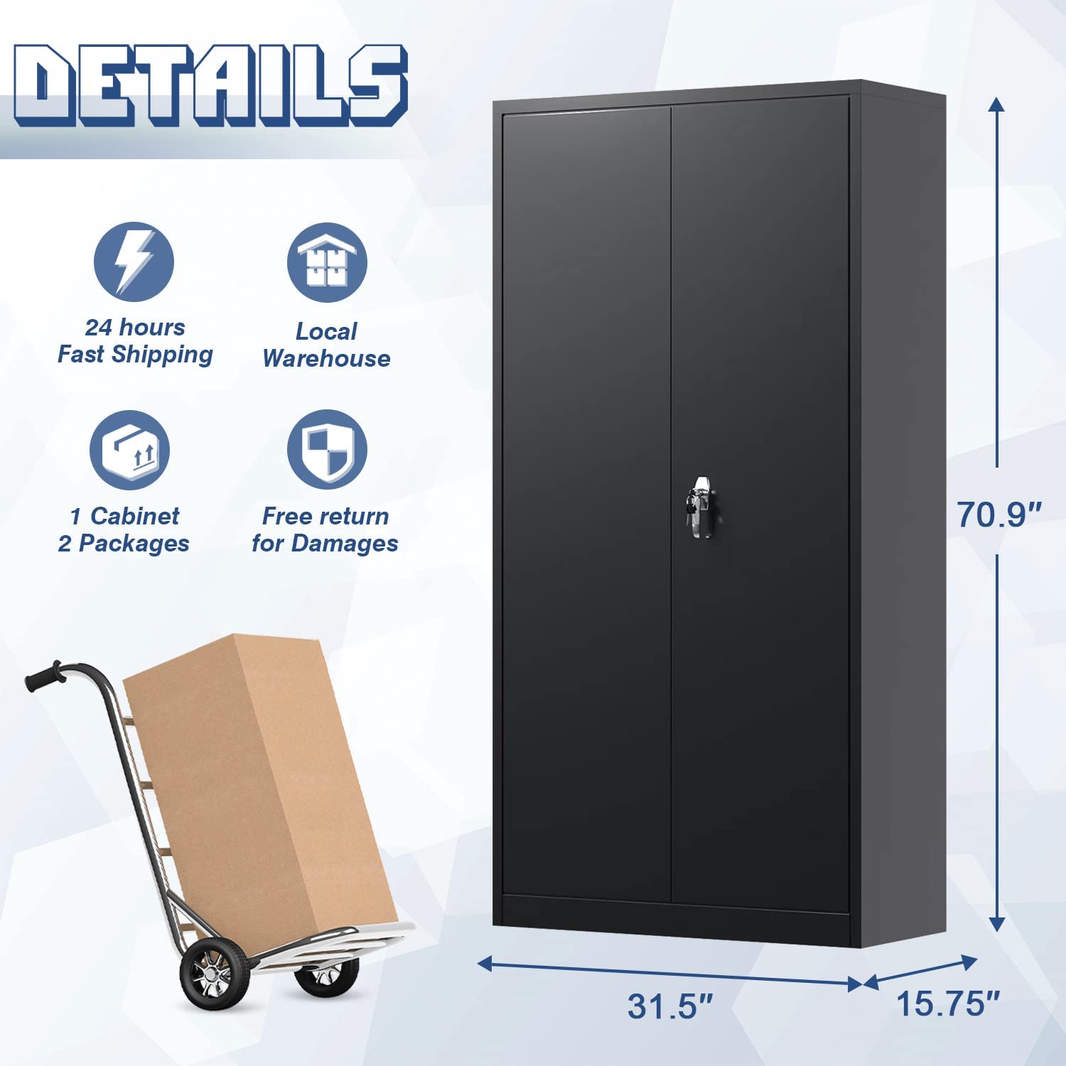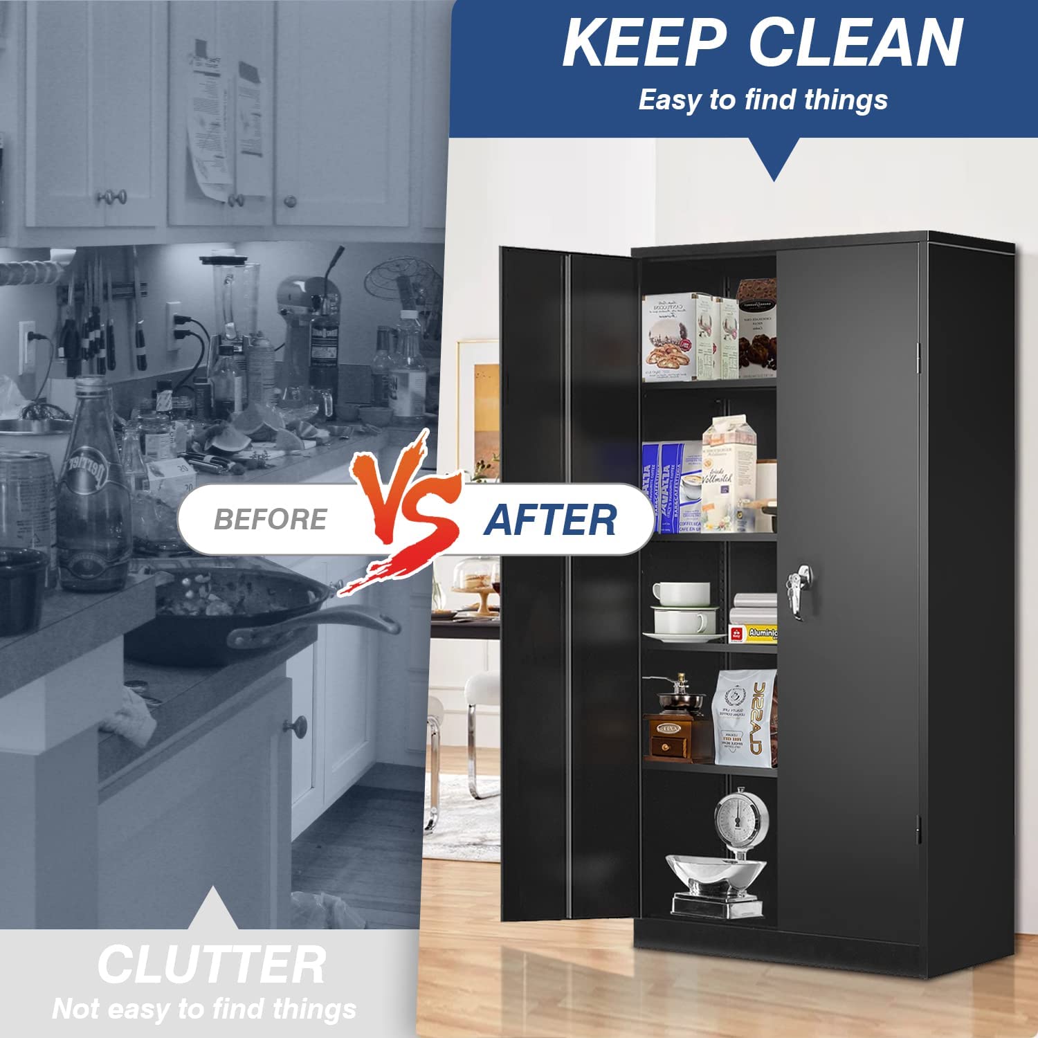 Greenvelly Locking Cabinet, Metal Garage Storage Cabinet with Doors and Shelves for Home Office, Black Steel Tool Cabinet with Lock, Lockable Large Utility Locker with Keys for Warehouse, Pantry Room
