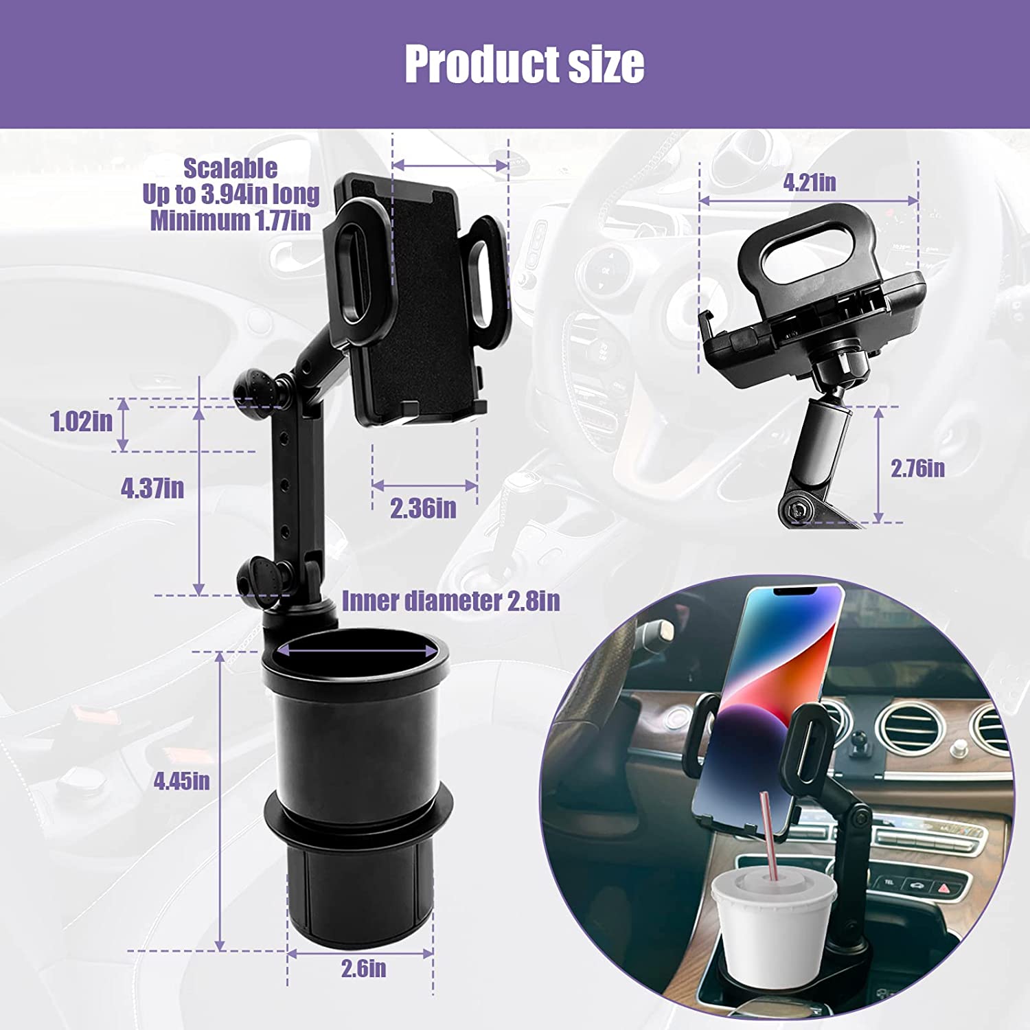 Widely Compatible: Our automotive adjustable cell phone holders fit most round car cup holders. While suitable for most cars, car cup holder designs vary widely and may not be compatible with some types of cup holders, be sure to measure your vehicle's cup holder to ensure a good fit.