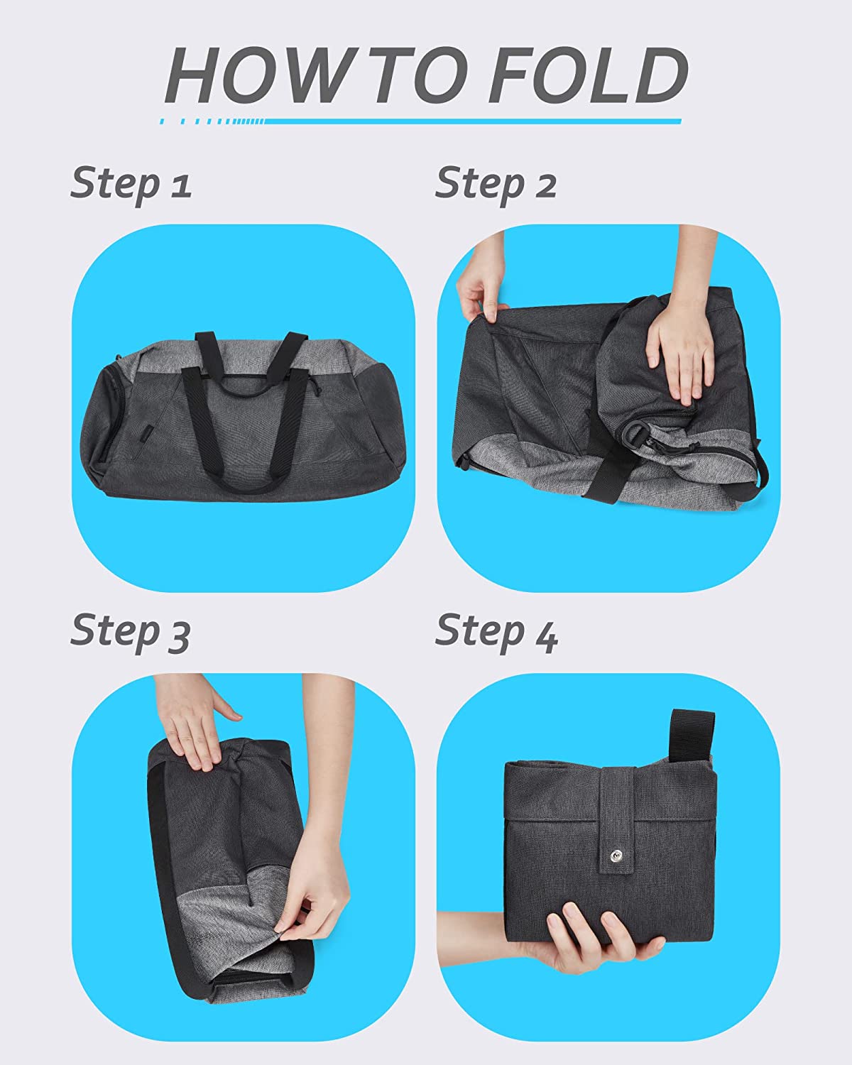 Foldable Gym Bag - The sports duffle bag can be quickly folded into a small package (1/20 of the regular size) and does not take up space when not in use. Lightweight material will not add extra weight burden to tired your after exercise. Durable tear-resistant fabric that can accompany you on every workout.