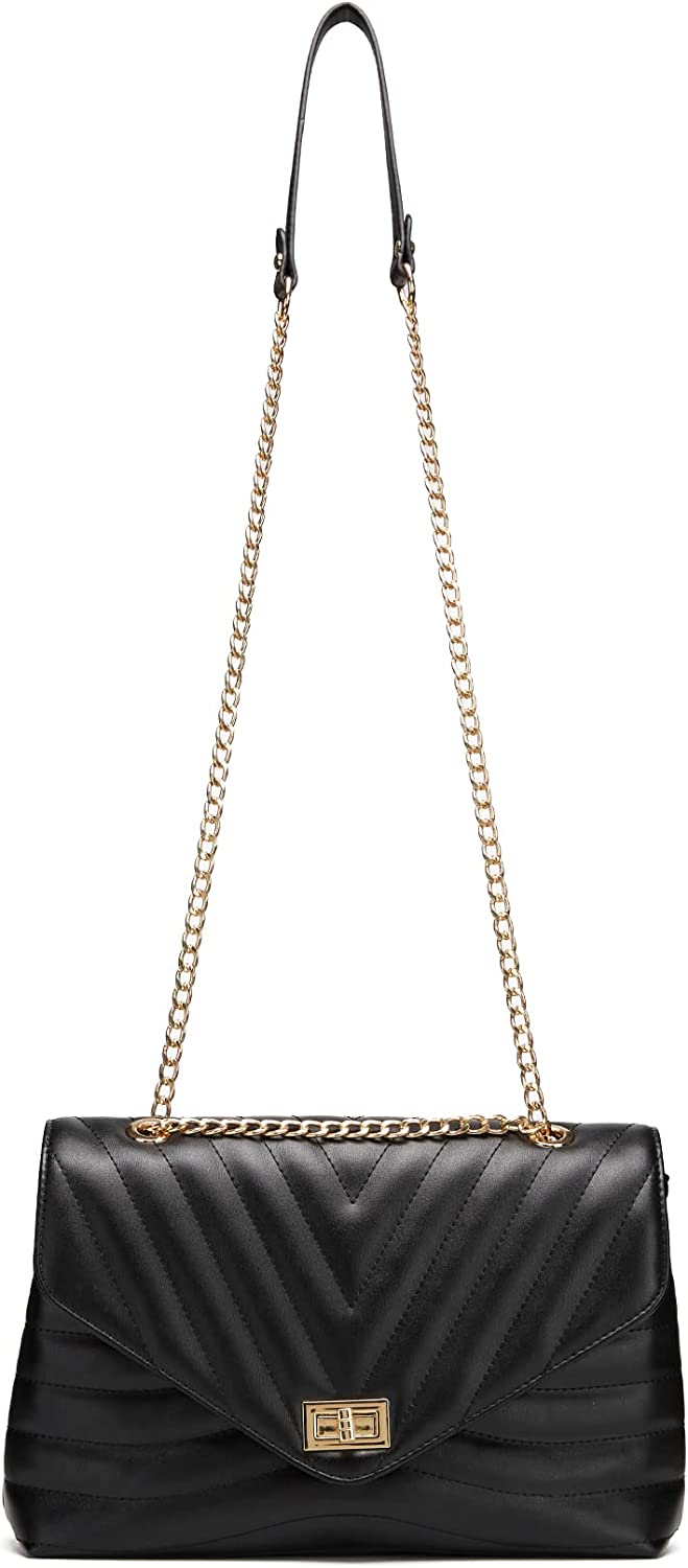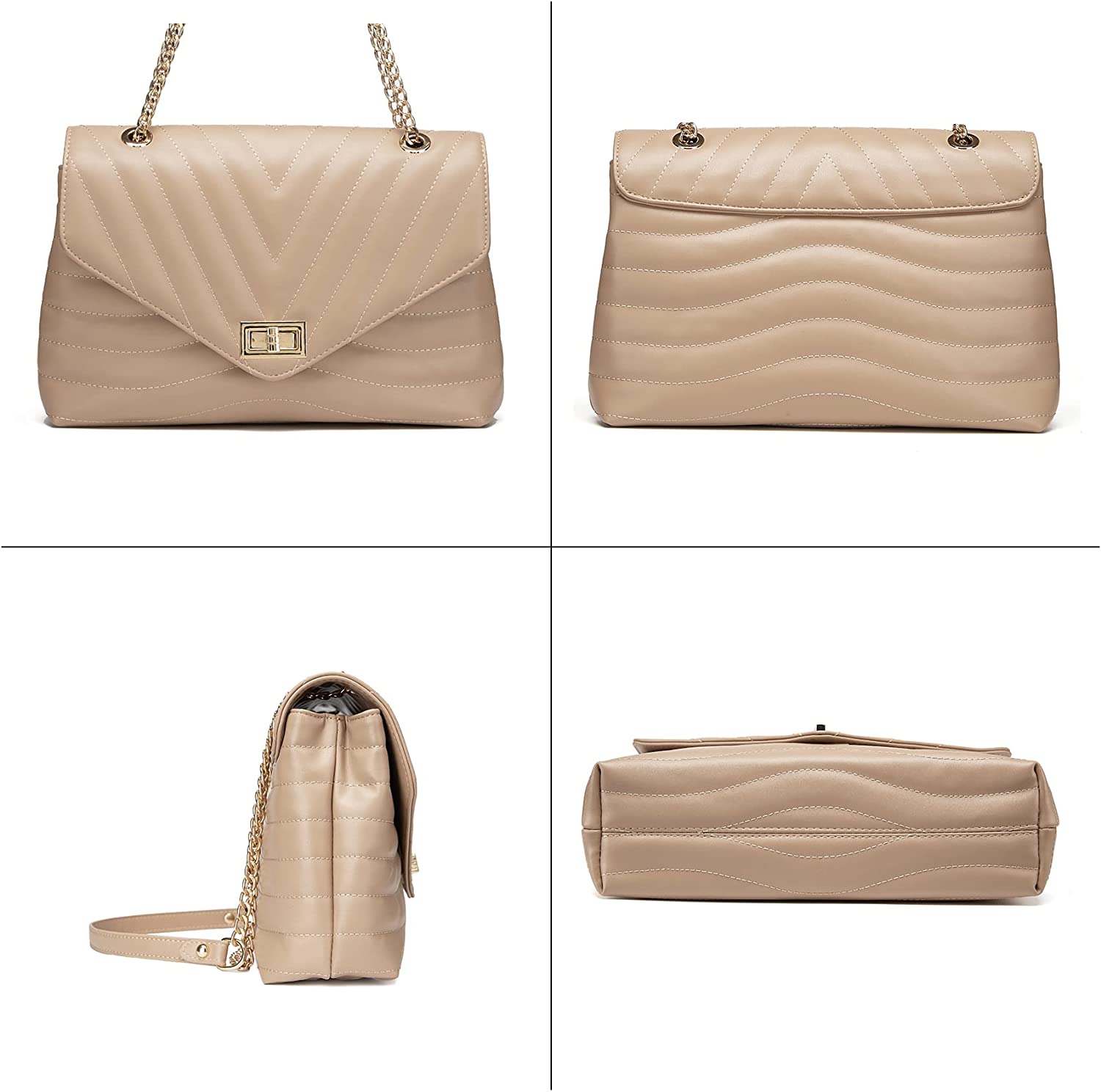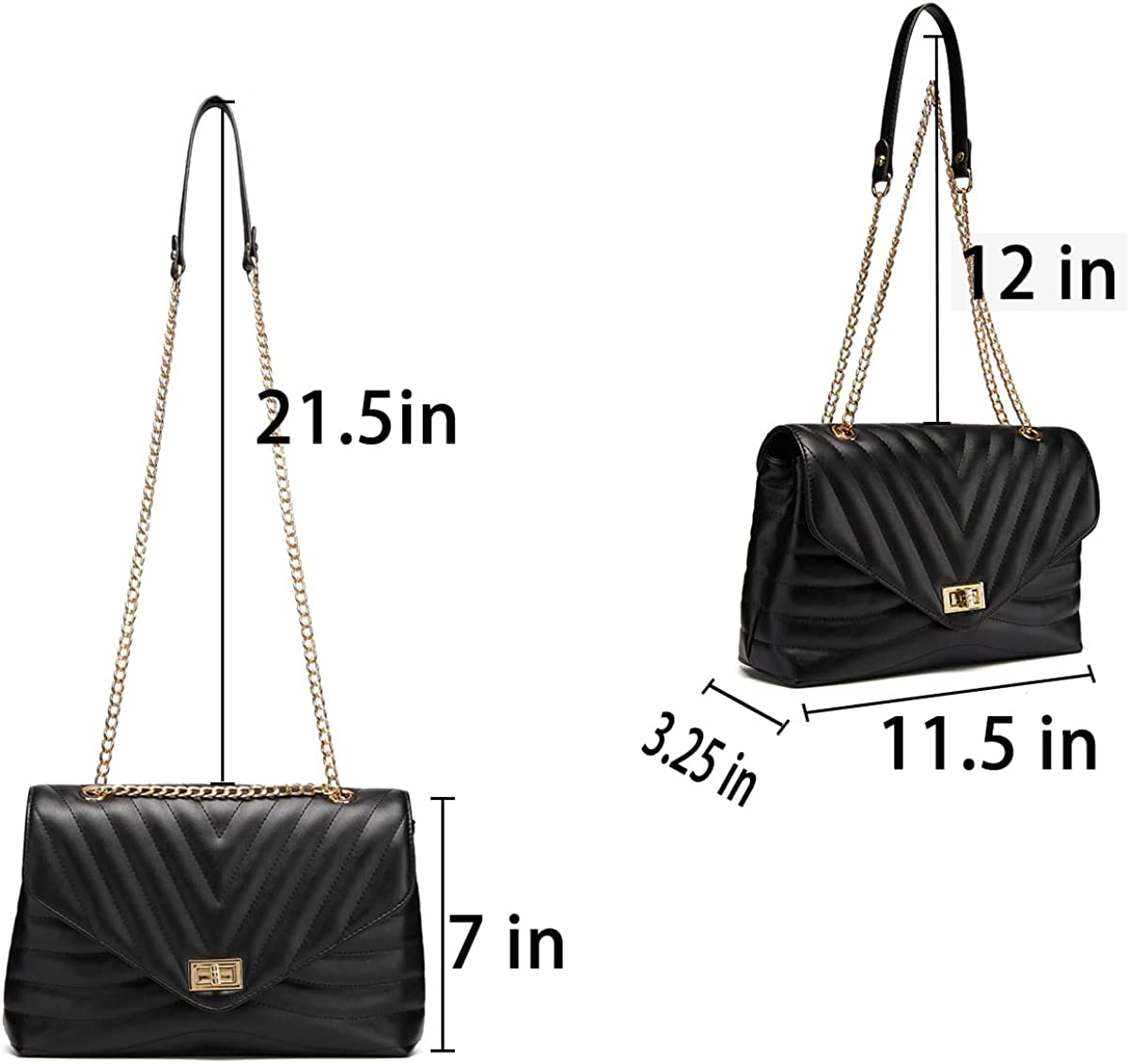 • CONVENIENT DESIGN: Lightweight handbag with adjustable chain straps. The strap of the quilted purse is composed of a light gold chain and soft leather, metal chain doesn't add too much weight. It can be a shoulder bag or a cross body or woman handbag or satchel bag, plus it also has a top handle, stand upright body is not easy to be out of shape.
