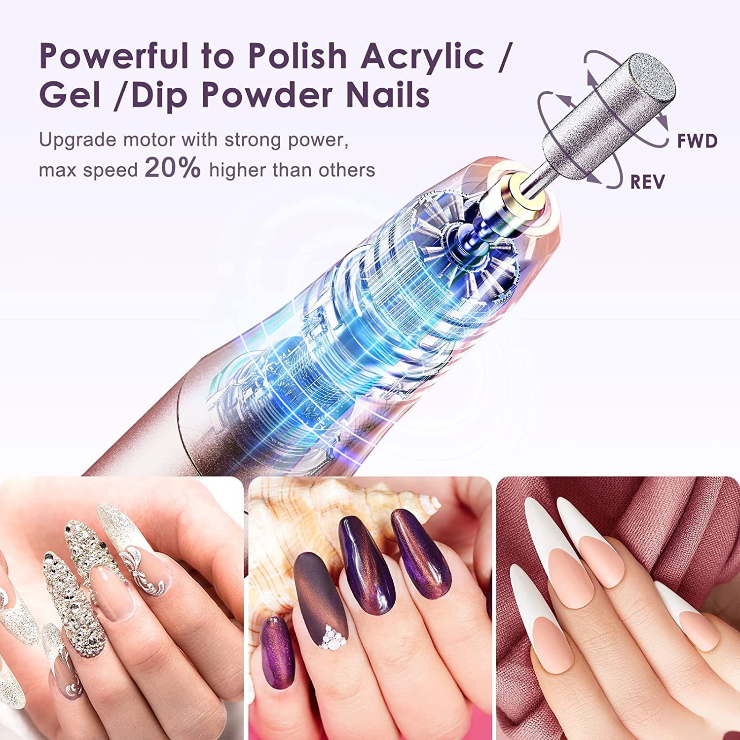 Multifunctional for Mandicure & Pedicure: With adjustable speeds and forward/reverse direction options, this nail drill machine comes with various professional grinder bits, you can customize your various manicure and pedicure routine to your liking: acrylic nails, gel nails, dip powder nails, cuticle and dead skin, calluses, thick nails and any other nail care needs