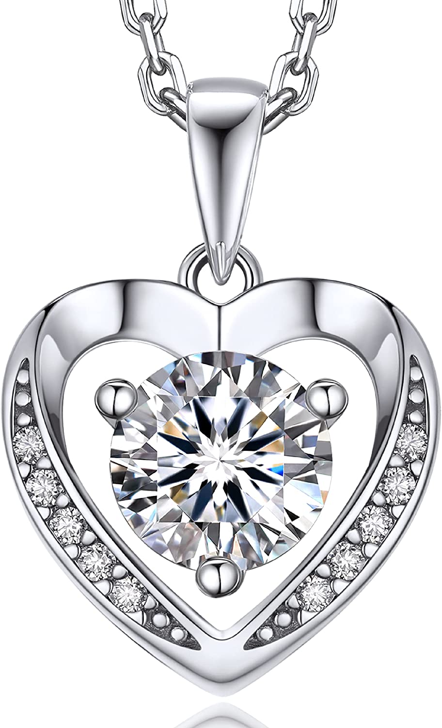 ❤️【Dainty Heart Pendant Necklace】 ➣ This heart necklaces for women is a perfect expression of love. Features a round brilliant cut centre moissanite 6.5mm/1ct 3 prong setting. With 10 accent moissanite. this pendant is suspended from a well-crafted S925 sterling silver chain necklace that can be worn at 16 or 18 inches.