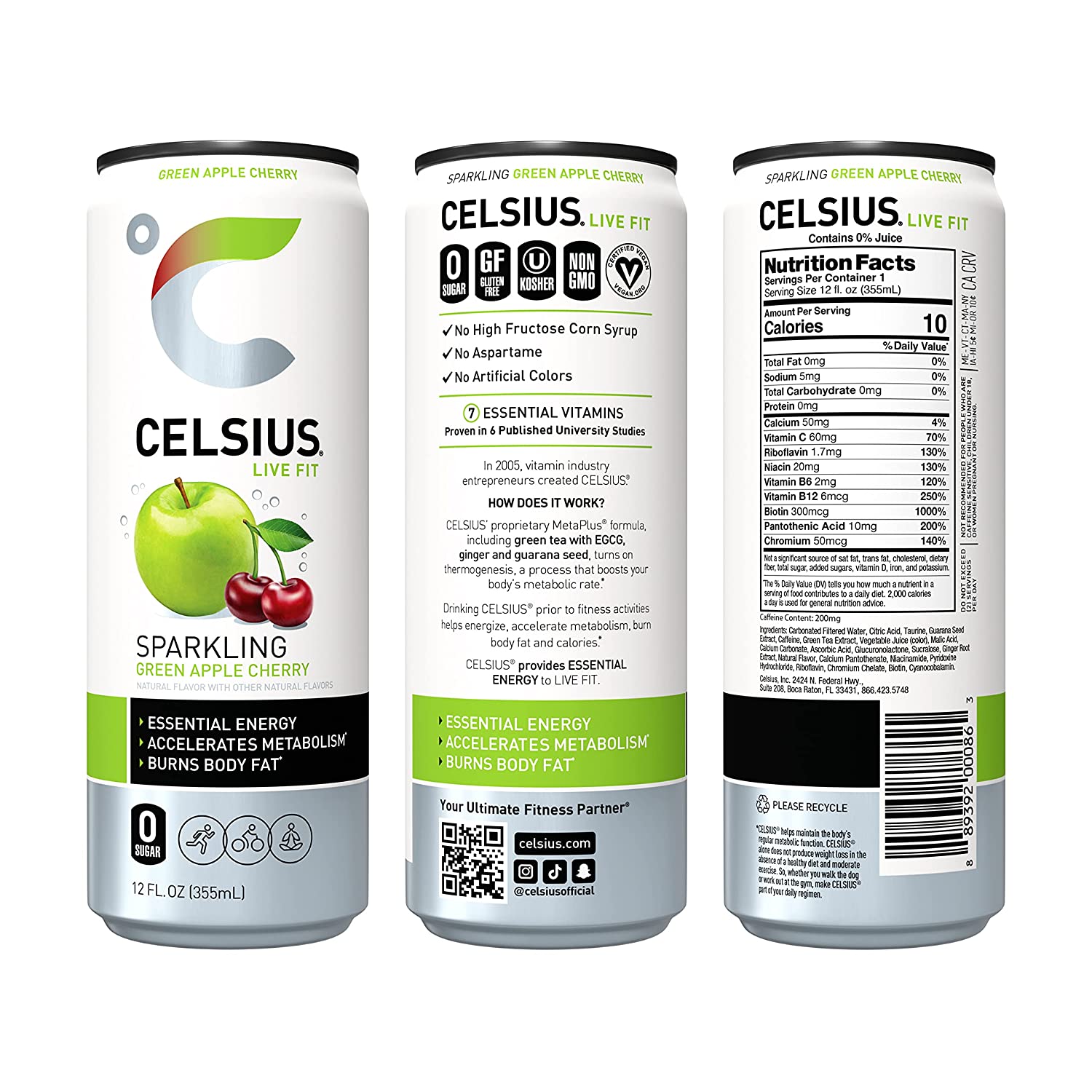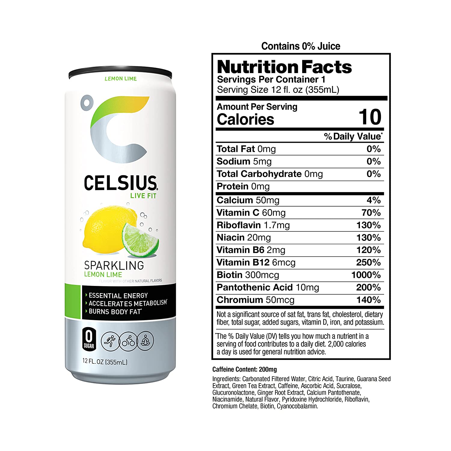 CELSIUS Sparkling Lemon Lime, Functional Essential Energy Drink 12 Fl Oz (Pack of 12)