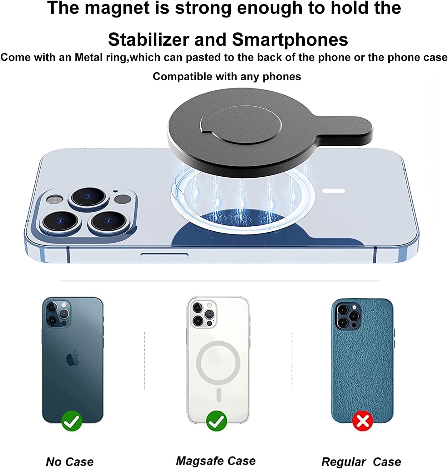 • In the Box: 1x Gimbal Adapter , 1x Magnetic Ring (Paste it on the back of the phone or phone case, compatible with Magsafe and Android, and all phones can be used)