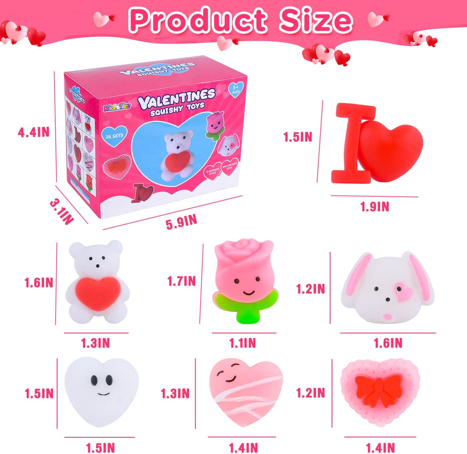 • 【Super Value Valentines Set】 - Our Valentines toy gift set including 36pcs squishy toys in 12 styles, 3pcs for each style, designed with full of valentines atmosphere; which is greatly for Valentine decorations, Valentine gifts, party favors, school event prizes, class exchange gifts etc.