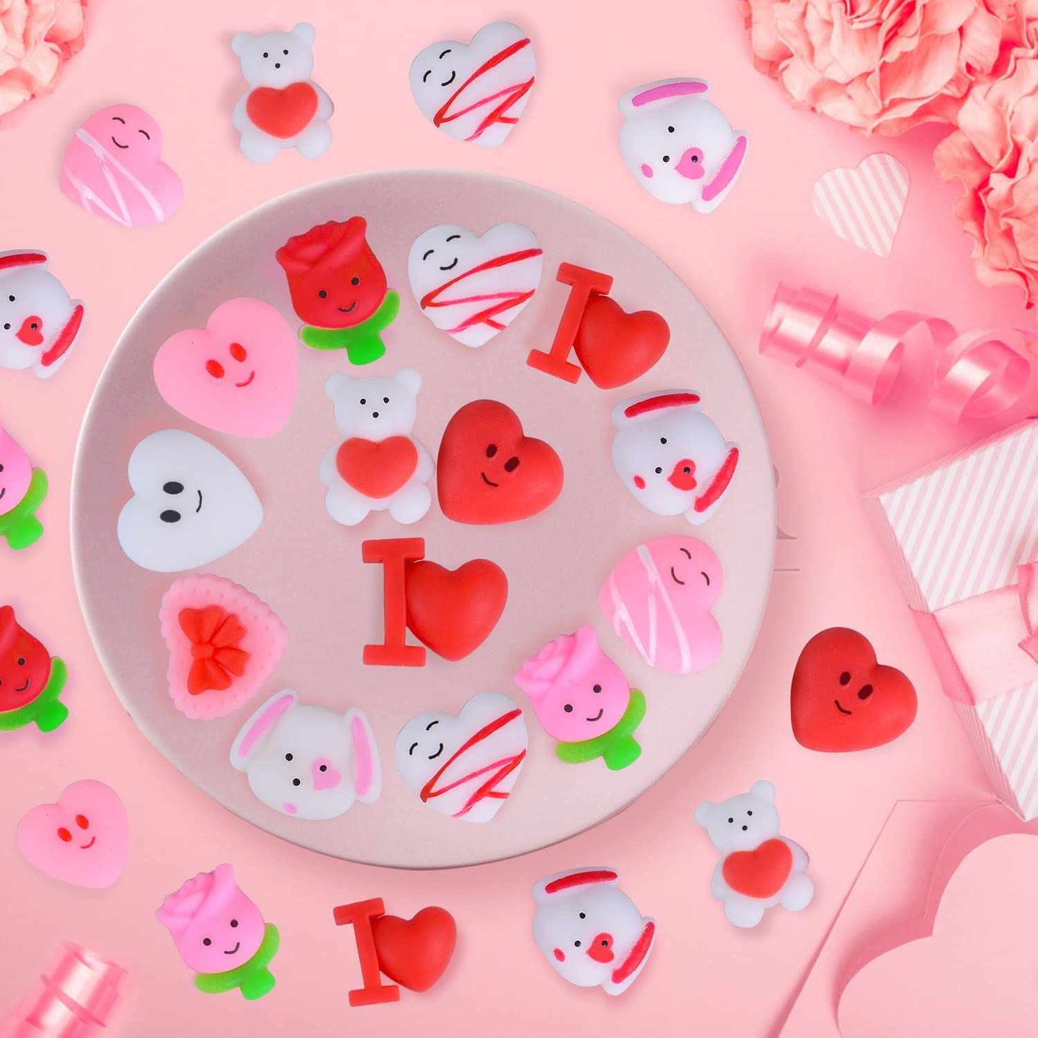 • 【Funny Valentines Gifts】 - Our 36pcs squishy toys comes in variety of colorful cute shapes - white heart, pink heart, red heart, pink rose, red rose, white bear, red dog, pink dog and more, which is perfectly match with Valentines theme, just fill your valentines gift bag with our valentines squishy toys to enjoy a happy valentines!