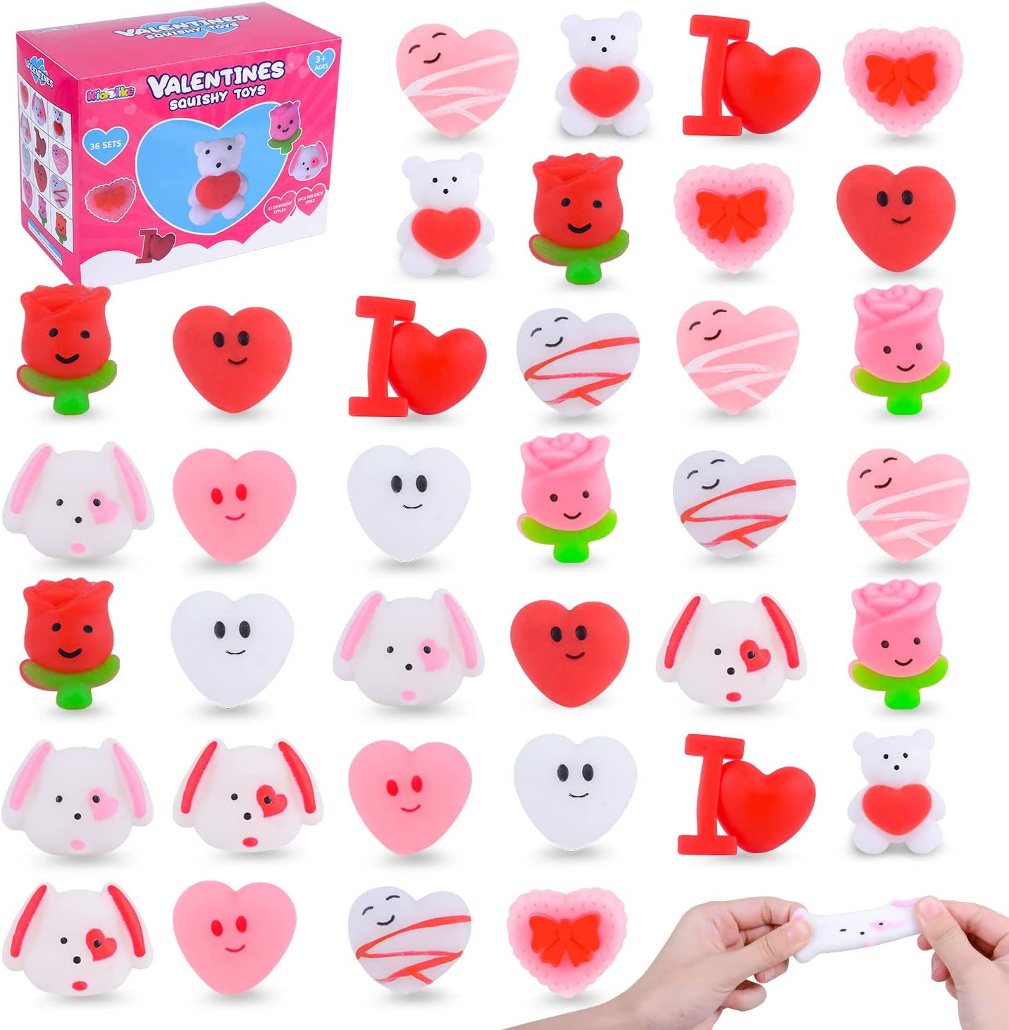 Valentines Day Gifts for Kids-36 Pack Valentines Squishy Toys for Boys Girls, Valentine's Day Decorations Party Favor supplies, Stress Relief Squeeze Toys for Kids, School Classroom Exchange Prizes