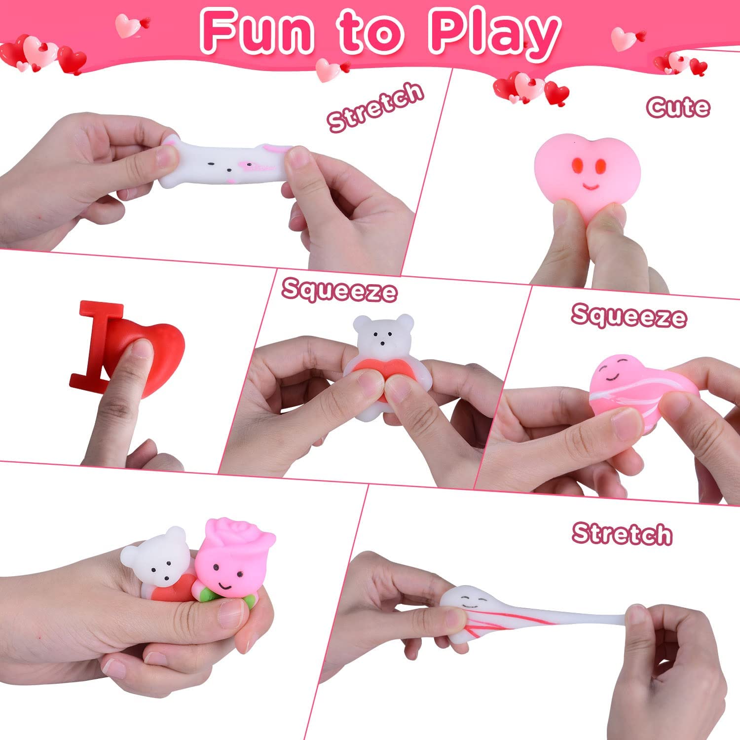 • 【Safety & High Quality Gift】 - All the cute squishy toys are made of premium TPR material with non-toxic and non-BPA, meet with ASTM F963 safety standards and CPC certified. It also comes with delicate gift box. Perfect gift for Valentine’s day, classroom parties or other activities.