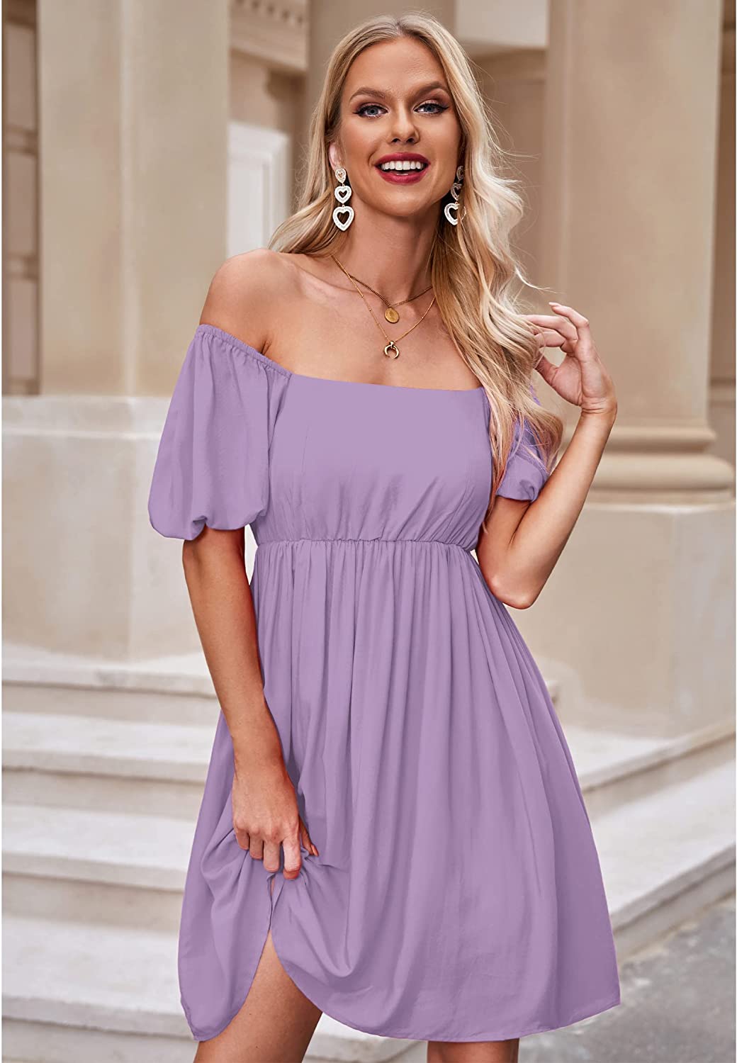 luvamia Summer Dresses for Women Square Neck Off The Shoulder Puff Sleeve A-line Short Flowy Babydoll Dress
