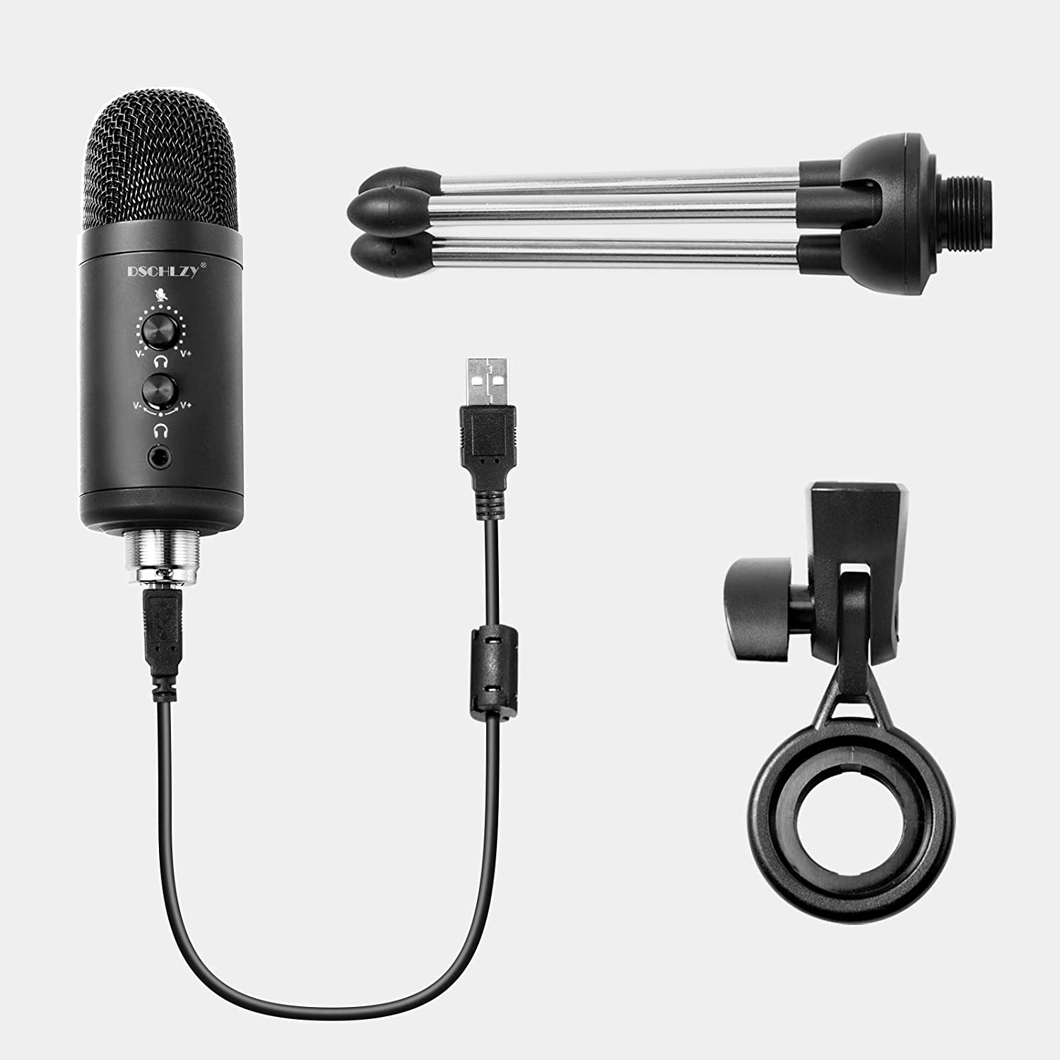 PACKAGE LIST AND WARRANTY :Condenser Mic + Small tripod + Mini shock absorbers + USB-B to USB-A Cable. DSCHLZY products provide 18-Month warranty to ensure a better shopping experience!we believe in our products so much that if you are not 100% satisfied for any reason, refund will be issued immedia
