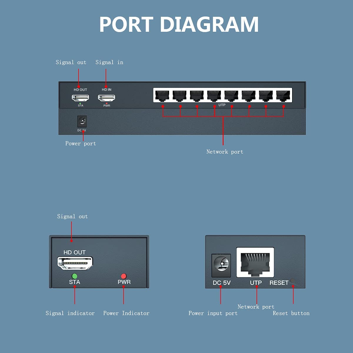 • Ultra-Long Distance: transmit HDMI audio/video signal up to 150 meters via Ethernet Cat6/7, Cat5e---120m, Cat5--100m.