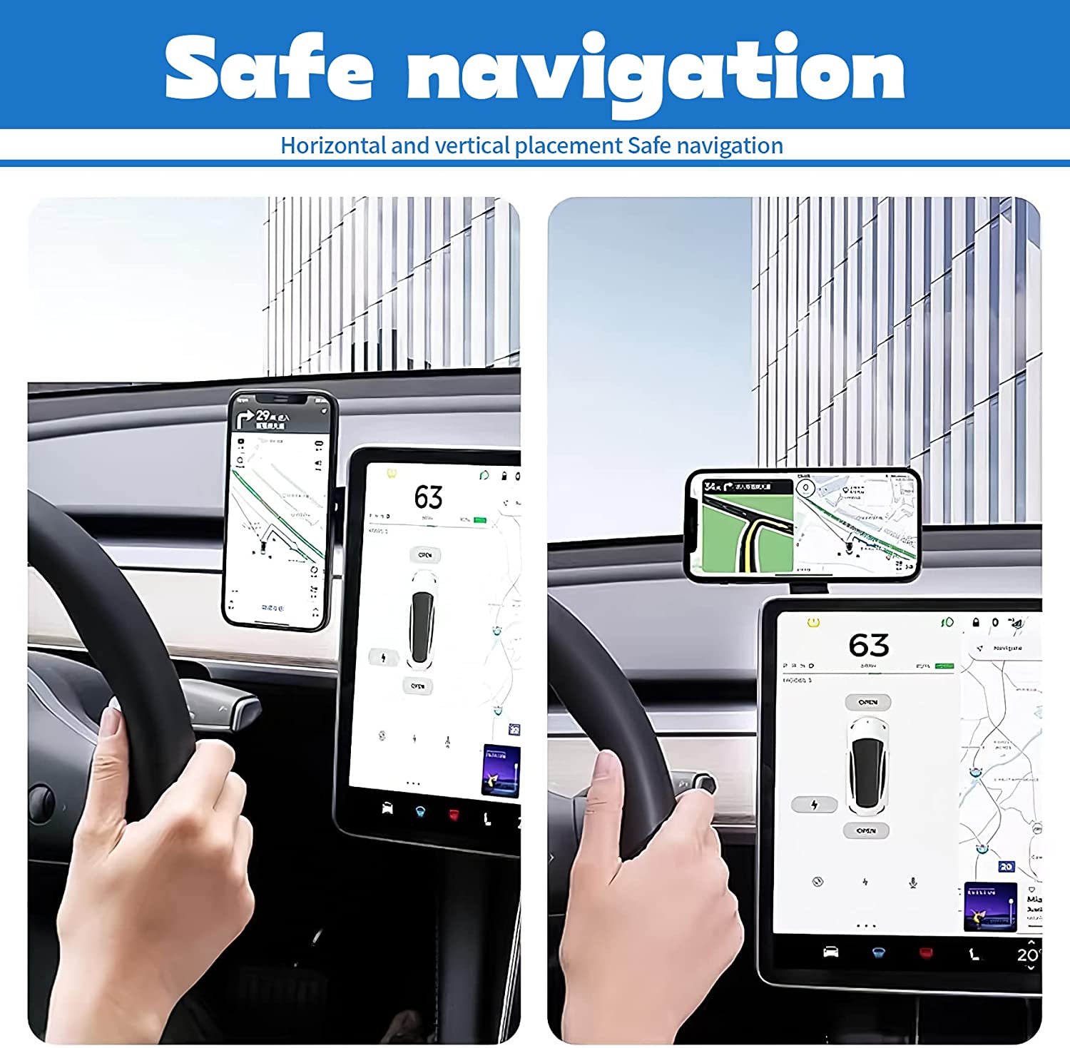 【Compatible With Center Screen】Foldable Car Phone Mount for Tesla 3/X/Y/S, Hide It On The Back of The Center Screen so That it is Not Visible, Magnetic Car Phone Mount Retains The Design of Tesla's Interior. It Can Also Be Mounted On The Dashboard or Windshield. (Note: This MagSafe Car Mount Does Not Have Wireless Charging!!!) .