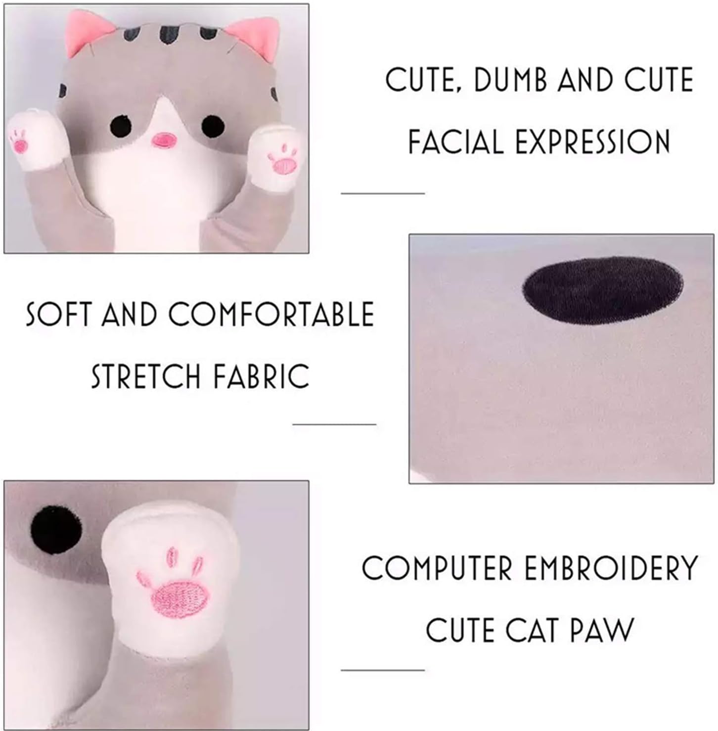 • 【Premium Hugging Pillow】Our Cuddly Cat Plush made of hight quality elastic fabric and stuffed with Soft PP Cotton, you will feel very comfortable when you hug him