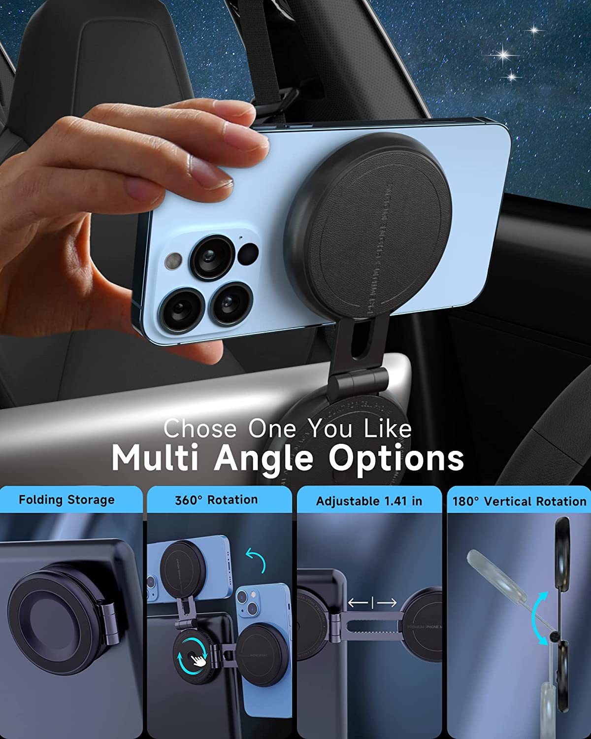 ?【Angle & Length Adjustable】The angle of this car mount is 360 degrees rotatable, Tesla Phone Mount is 135 degrees back and forth reversible, and the length of the premium metal arm can be extended 1.41 inches, easily swivel the display as you wish and adjust it to a perfect view for you. And you can fold it up when it is not in use.