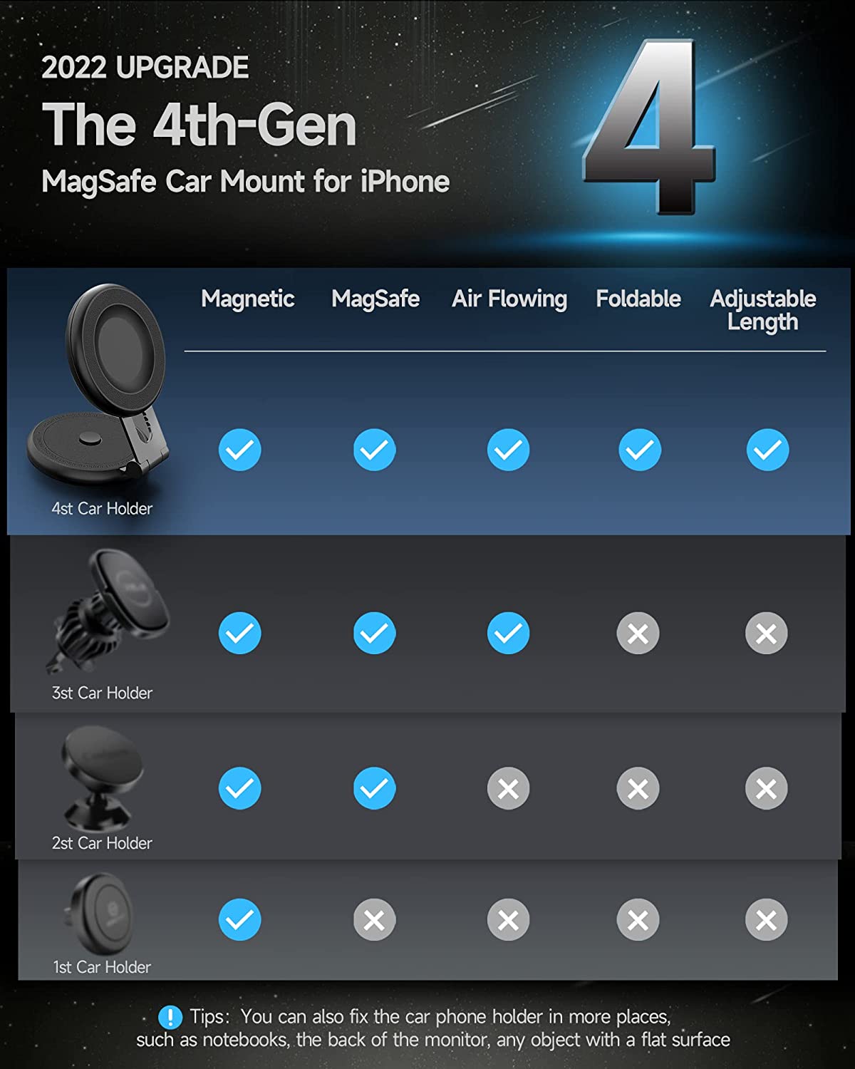 ?【Car Central Screen Compatible】 Phone holder mount is designed for cars has a central screen, such as Tesla model 3/X/Y/S, hide it on the back of the main net makes it invisible, and preserves the design of the Tesla interior. It also can be mounted on the dashboard or windshield.