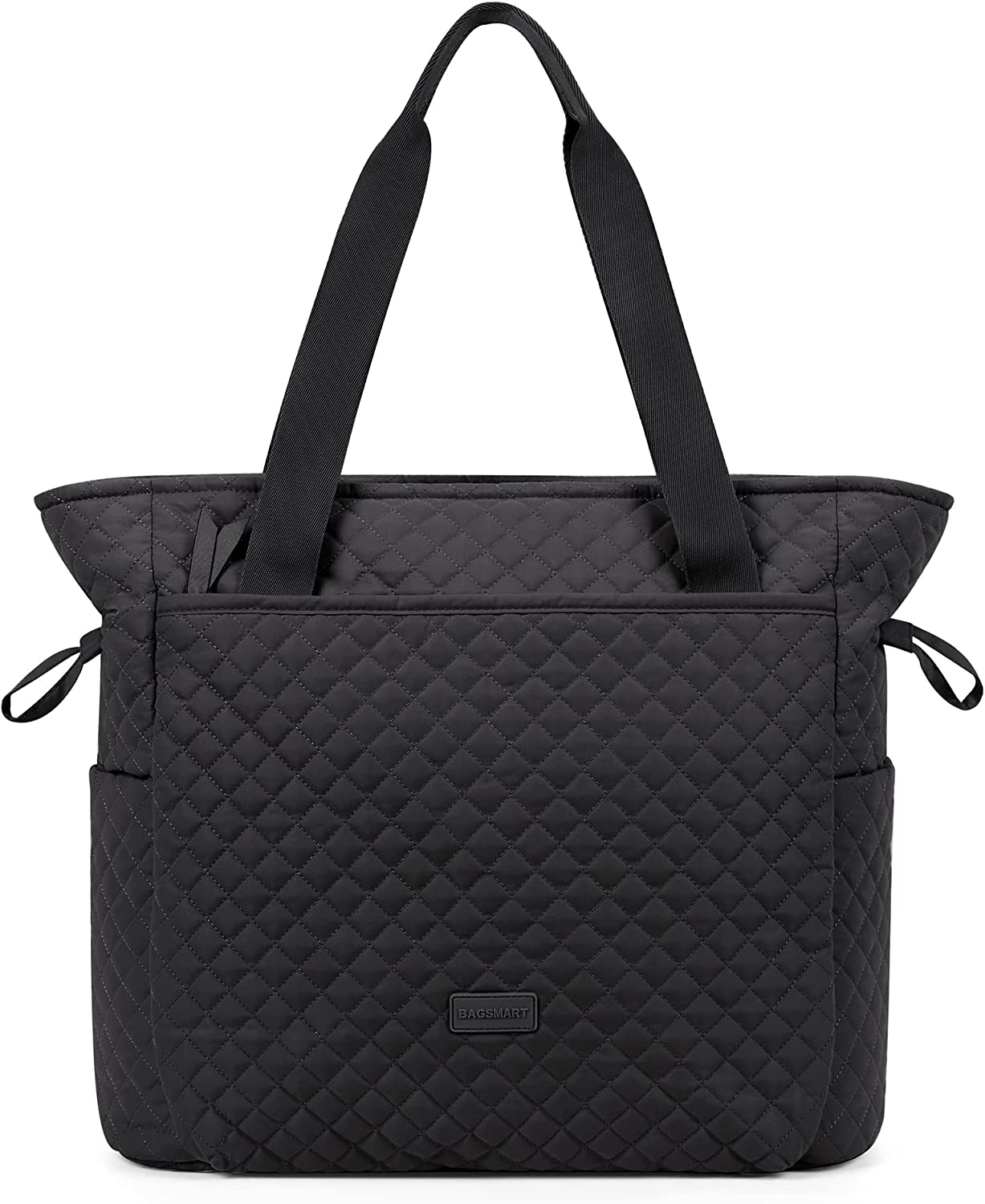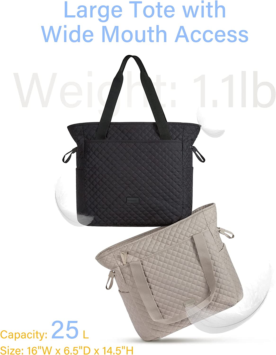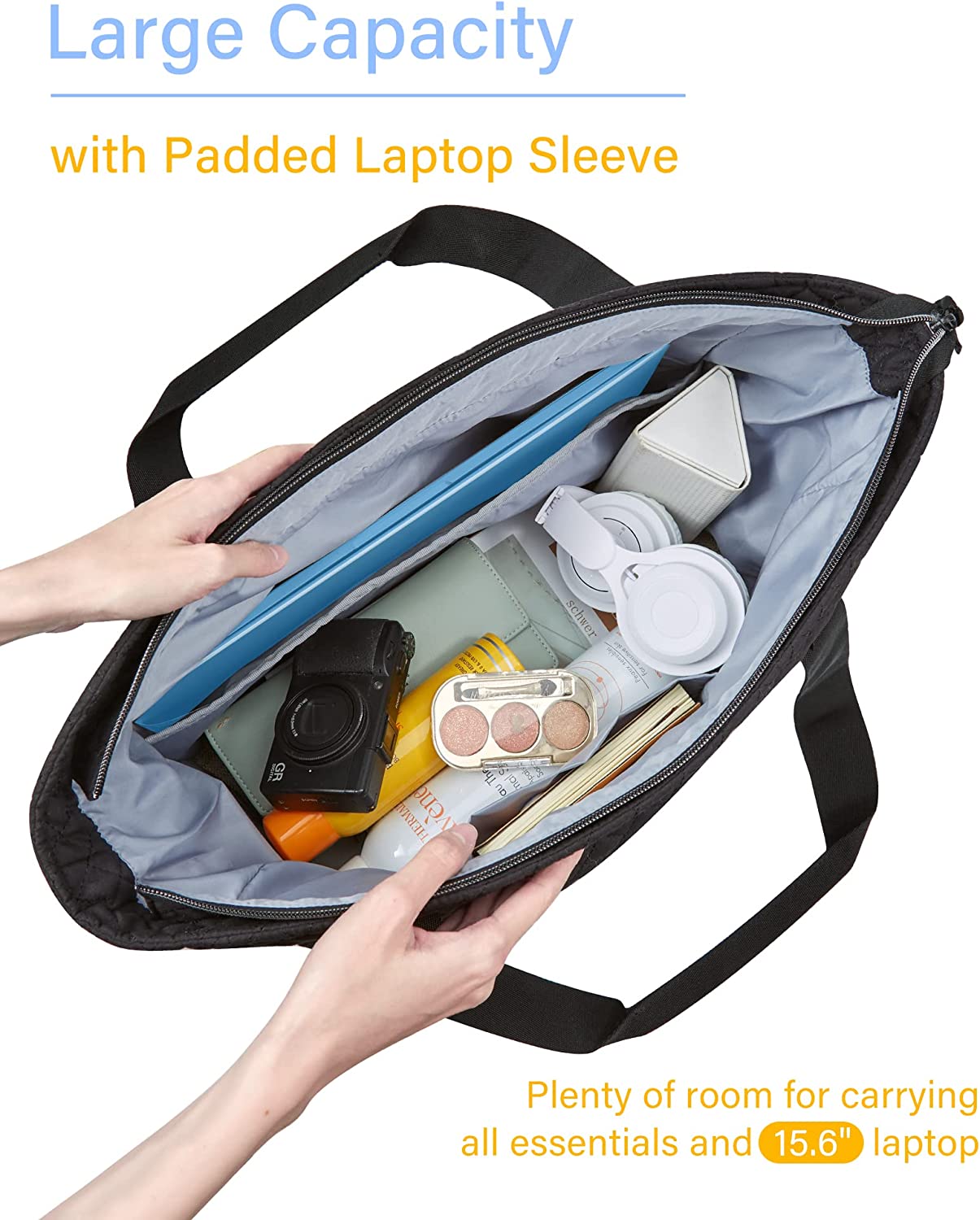 Fits All Your Essentials: The tote bag offers a spacious interior for carrying all your essentials. It's 16" wide and 14.5" tall with a 15.6" padded laptop sleeve and features durable top handles that provide a convenient carrying option