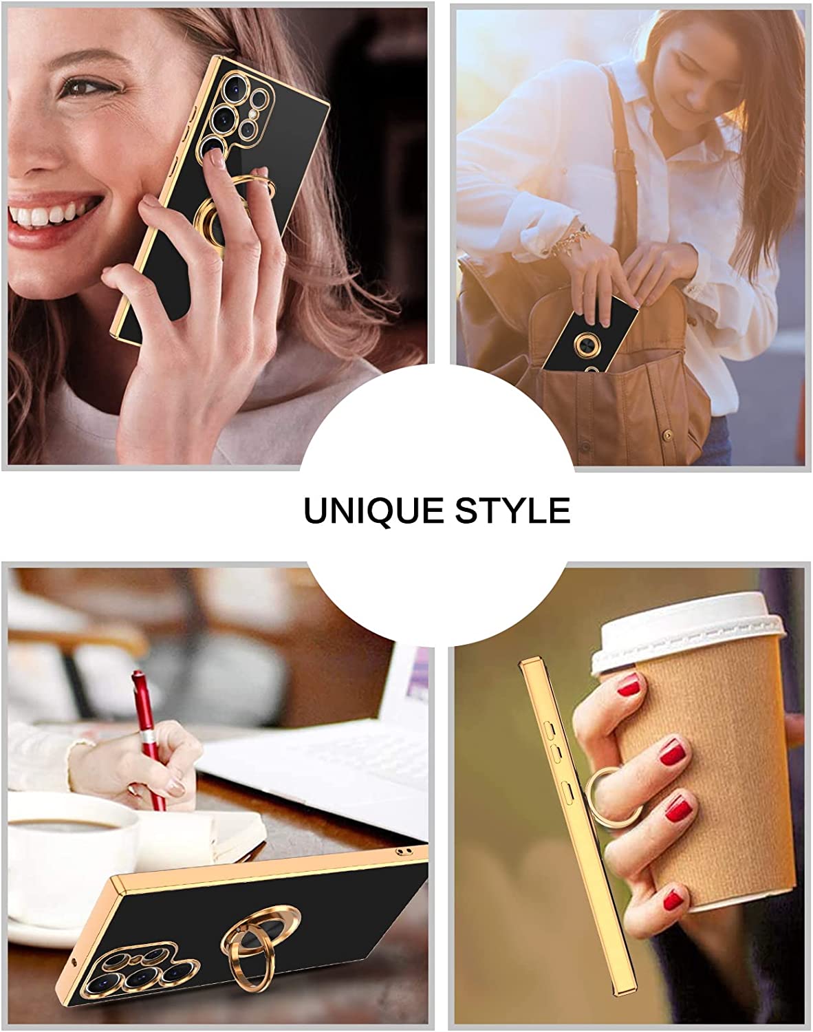 ★【Functional Rotatable Ring & Kickstand】This s23 ultra phone case comes with a convenient adjustable sturdy ring holder which can rotate 360 degree for easy safe carrying. Built-in kickstand gives you the convenience to watch videos and movies hands-free with desired comfort and stability.