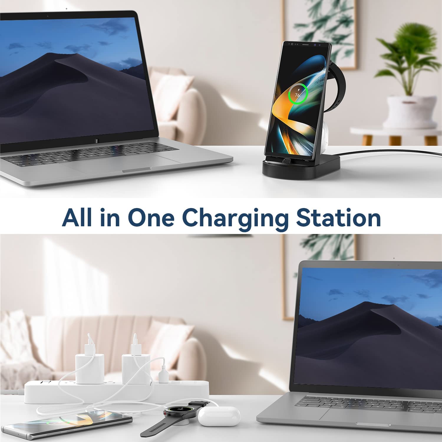 【3 in 1 Charging Station】Our charging station can charge for Samsung Galaxy watch, Android phone and earbuds with just one cable, no other cables needed, simplifying your desk and bedside nightstand. Buy 1 DUMTERR Charging Station for Samsung devices, you can enjoy the convenient it brought.