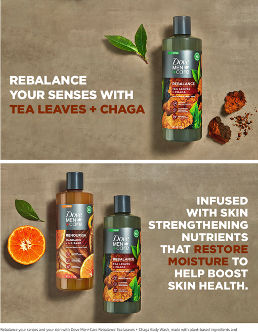 Transform your skin with every shower into a caring routine for your skin, with the Dove Men+Care Rebalance Body wash for skin hydration that gently cleanses and nourishes skin. This Dove Men+Care Rebalance Body wash is formulated with tea leaves and chaga to rebalance your senses and provide superior hydration. Chaga contains Vitamin D, antioxidants and amino acids for skin care. Dove Men+Care Rebalance Body wash has plant-based ingredients and nutrients for healthier and stronger skin. This moisturizing body wash is infused with our Vitamin & Mineral Complex to restore moisture and boost skin health. Our paraben-free and sulfate-free body wash is made with plant-based moisturizers to transform even the driest skin in just one shower. Squeeze a generous amount of Dove Body wash into your palms. Massage the hydrating body wash onto your skin, taking a moment to enjoy the rich lather before rinsing off. This sulfate free body wash is Certified Cruelty-Free by PETA, vegan and is made in 100% recycled plastic bottles, so you can feel good about switching to Dove. Dove care goes further than moisturizing skin care with PETA Cruelty-Free certification and 100% recycled plastic bottles.