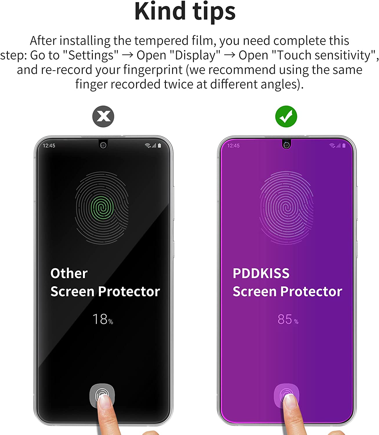 【Supports Ultrasonic Fingerprint】 PDDKISS designed s for Samsung Galaxy S23+ screen protector 5G 6.6 inch. After installing, simply re-register your fingerprint and experience a perfect and fast unlock.