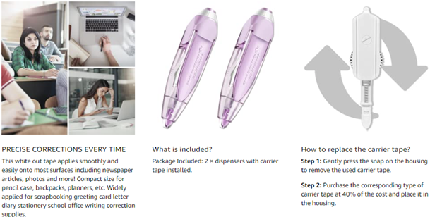 - REFILLABLE - Designed in the shape of a pen, get your mistakes corrected with PEONYELF's white out tape. With our refillable carrier tape, you can easily refill the applicator without having to buy another whole one.