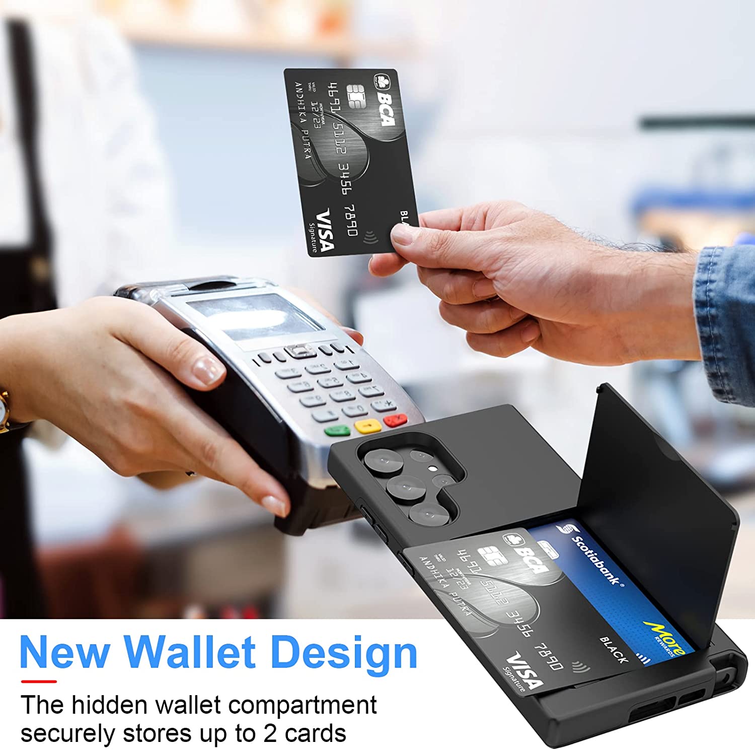 【Sliding Card Slot】Hidden Card Wallet is on the back of Samsung S23 Ultra case, which can store 2 cards securely, put in your credit card, debit card, ID, driver's license, or cash, very portable.You needn't bring an extra card bag if you have this phone case.