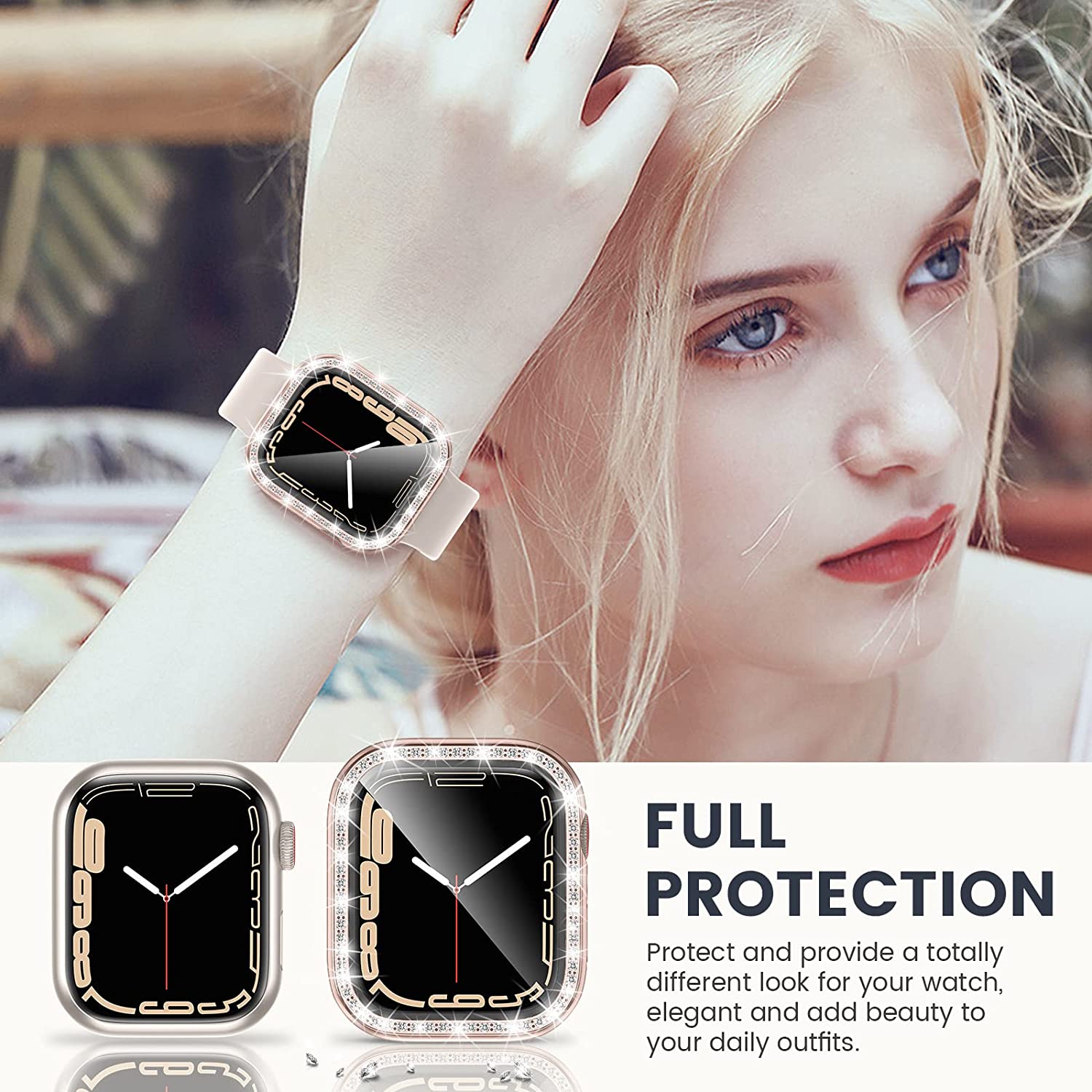 [COMPATIBILITY] Designed for Apple Watch Series 8 41mm & Apple Watch 7 41mm, please choose the suitable model by you need. Bling diamonds cover with screen protector, protect and stylish your Apple Watch! NOTE: Not fit for Apple Watch 8 45mm & Apple Watch 7 45mm (Choose the other size variation), Apple Watch SE 2022 Series 6/ 5/ 4 40mm or 44mm, Series 3/2/1 38mm or 42mm.