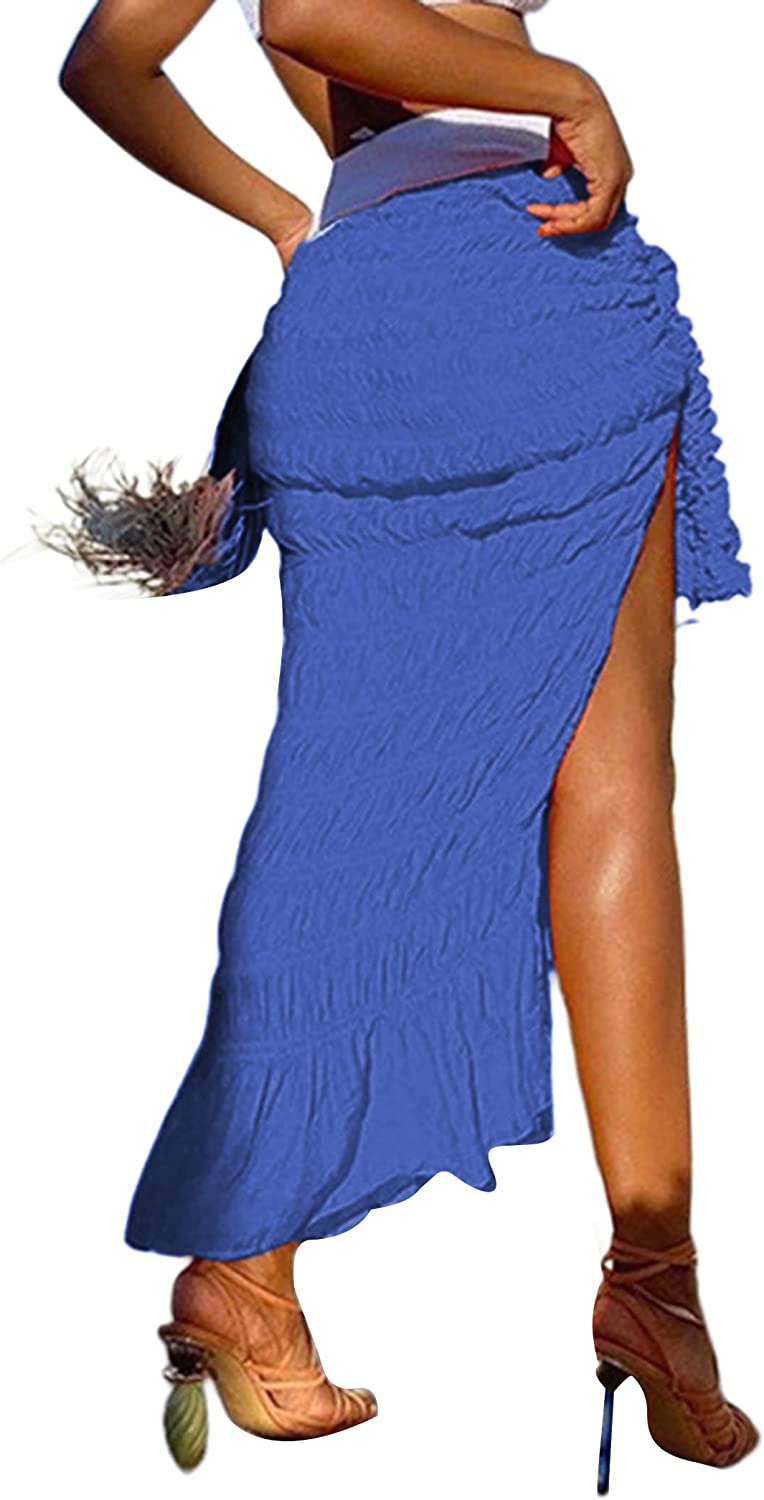 • Features: Sexy high waisted midi skirts for women, feature with split side design, ruffle hem, pleated ruched sarong skirt, knot waist cover up skirt, summer boho beach skirts