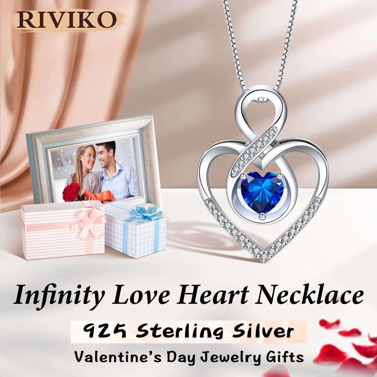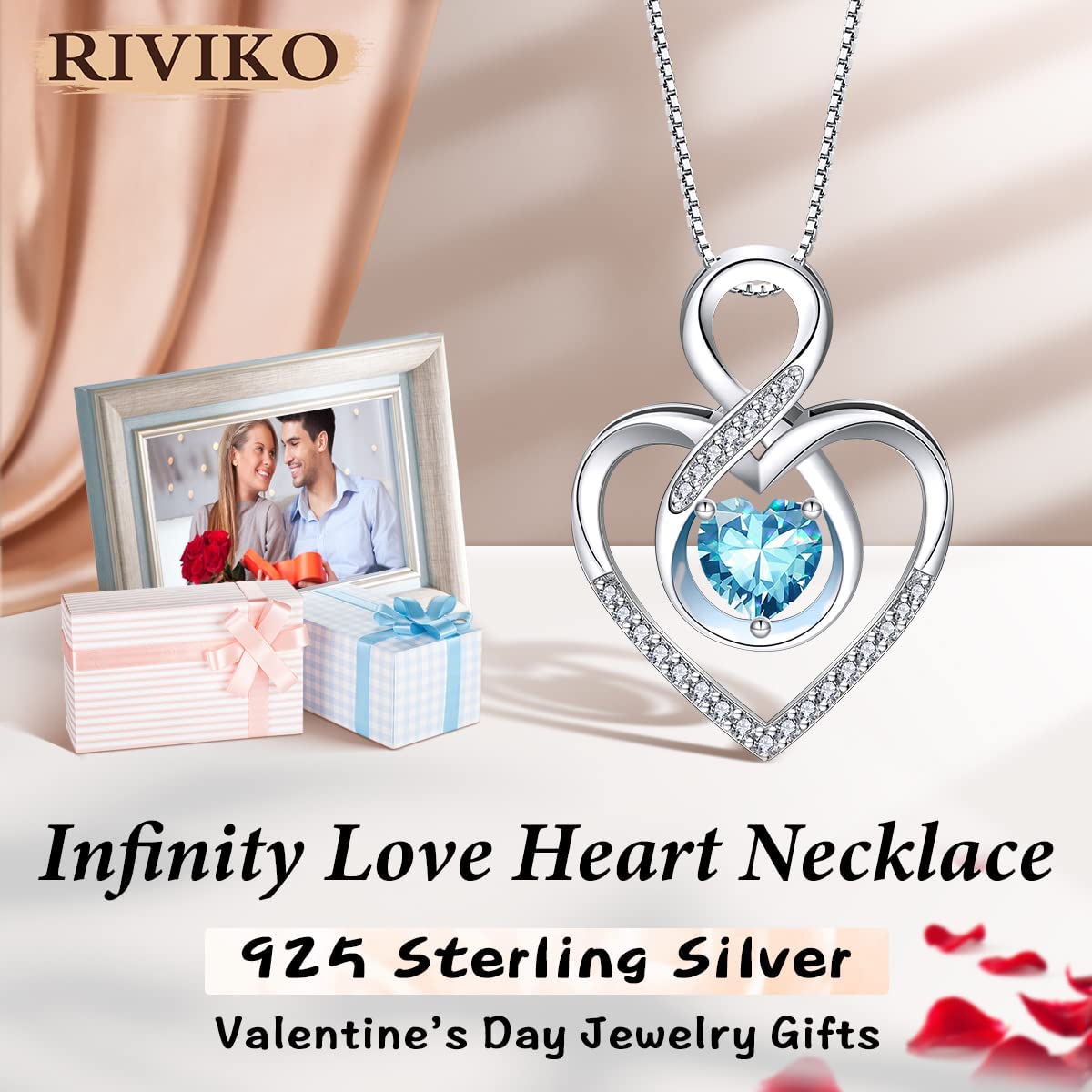 RIVIKO Infinity Heart Symbol Necklace for Women 925 Sterling Silver Dainty Forever Love Heart Pendant Valentine's Day Mother's Day Anniversary Birthday Jewelry Gifts for Women Mom Wife Girls Sister He