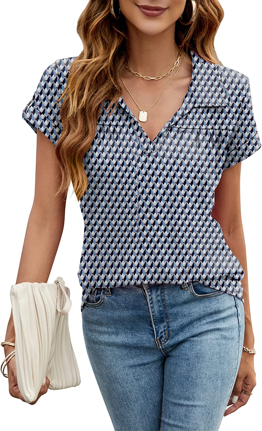 • Features: Casual and elegan. Super soft, breathable and comfortable to Daily wear. collared v-neck shirts for women, short rolled sleeve t shirt for women, solid color and summer v neck shirts, fitted women pullover tunic top and blouses