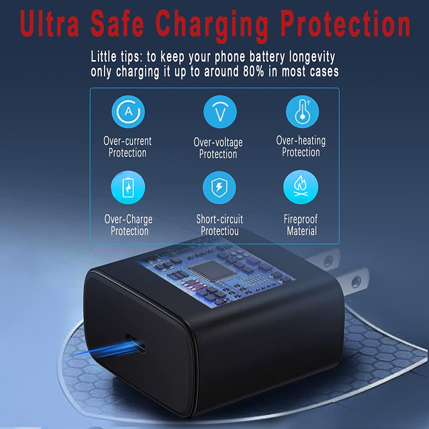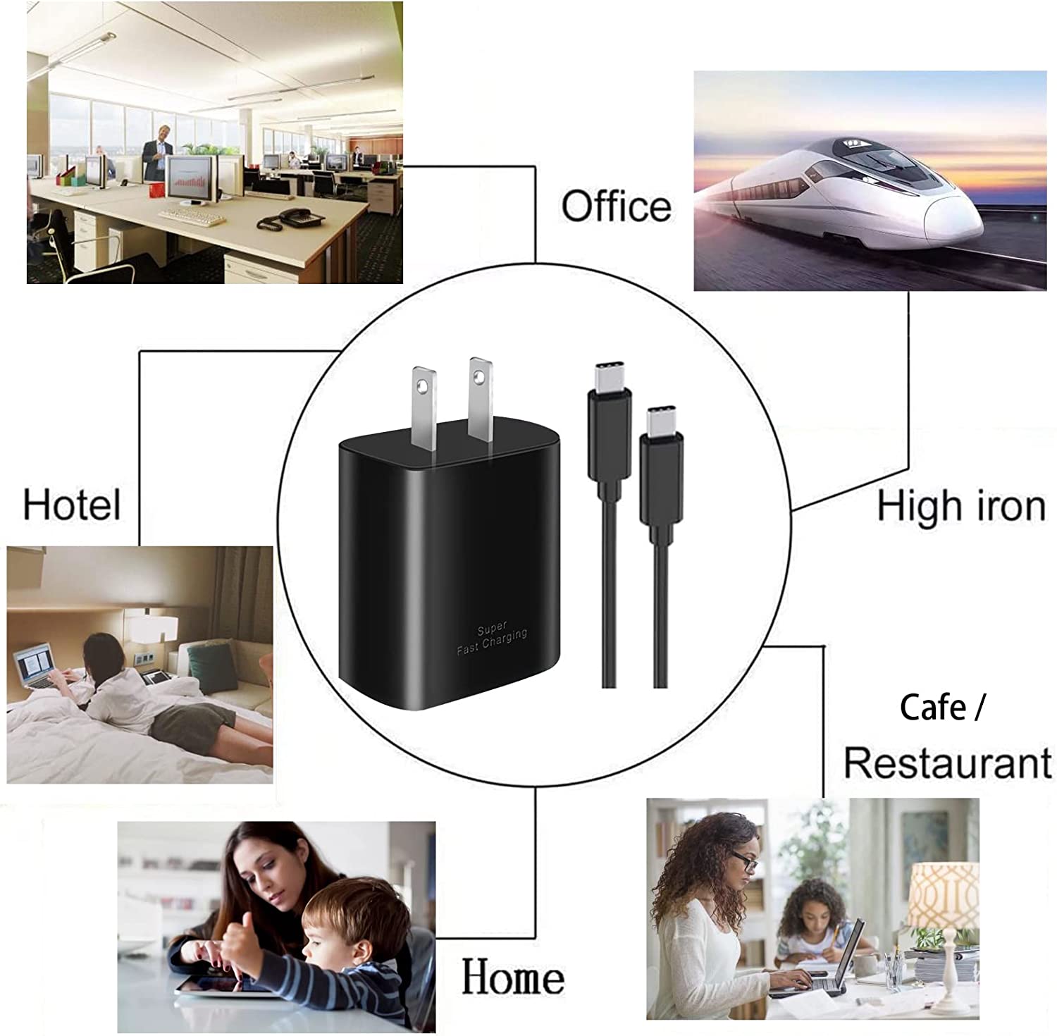 • ⚡ Multiple Protection System : This samsung super fast charger type c has built-in smart chips and protective system which can monitor the charging condition protecting your devices against overvoltage, overcurrent, overheating, overcharging and short-circuit...Little tips to keep your phone battery longevity - only charging it up to around 80% in most cases :)