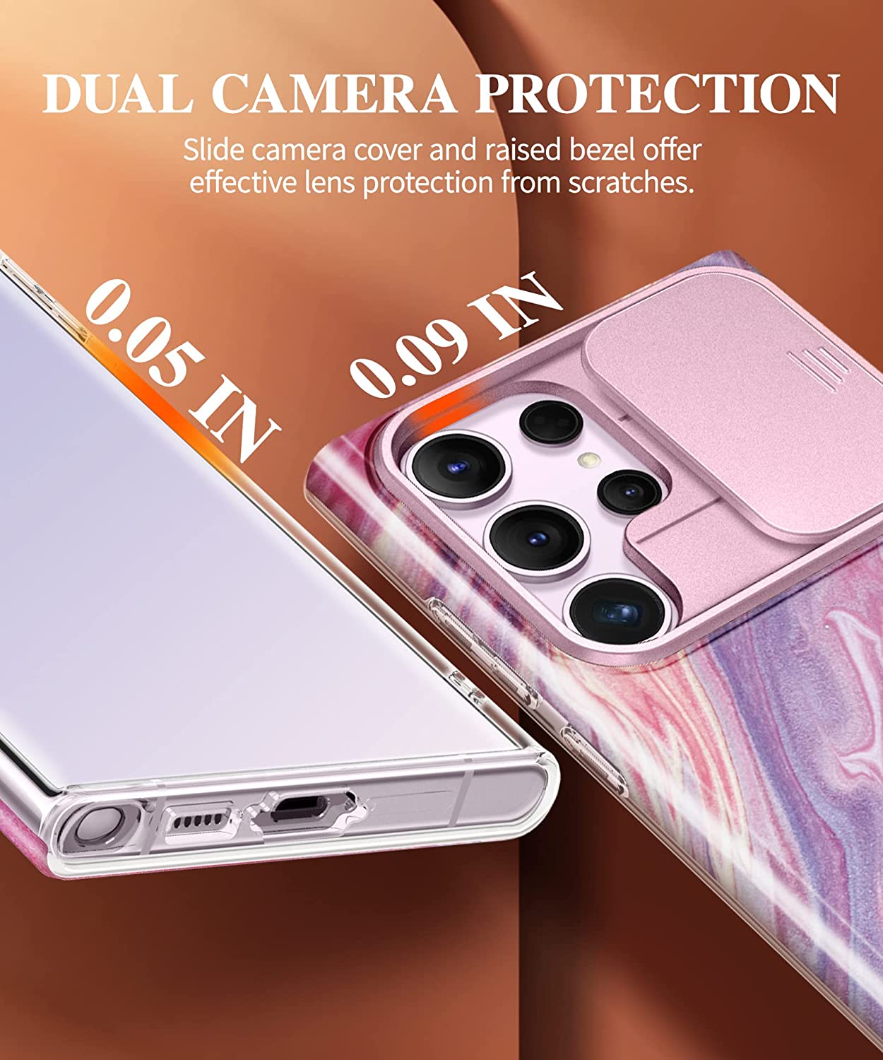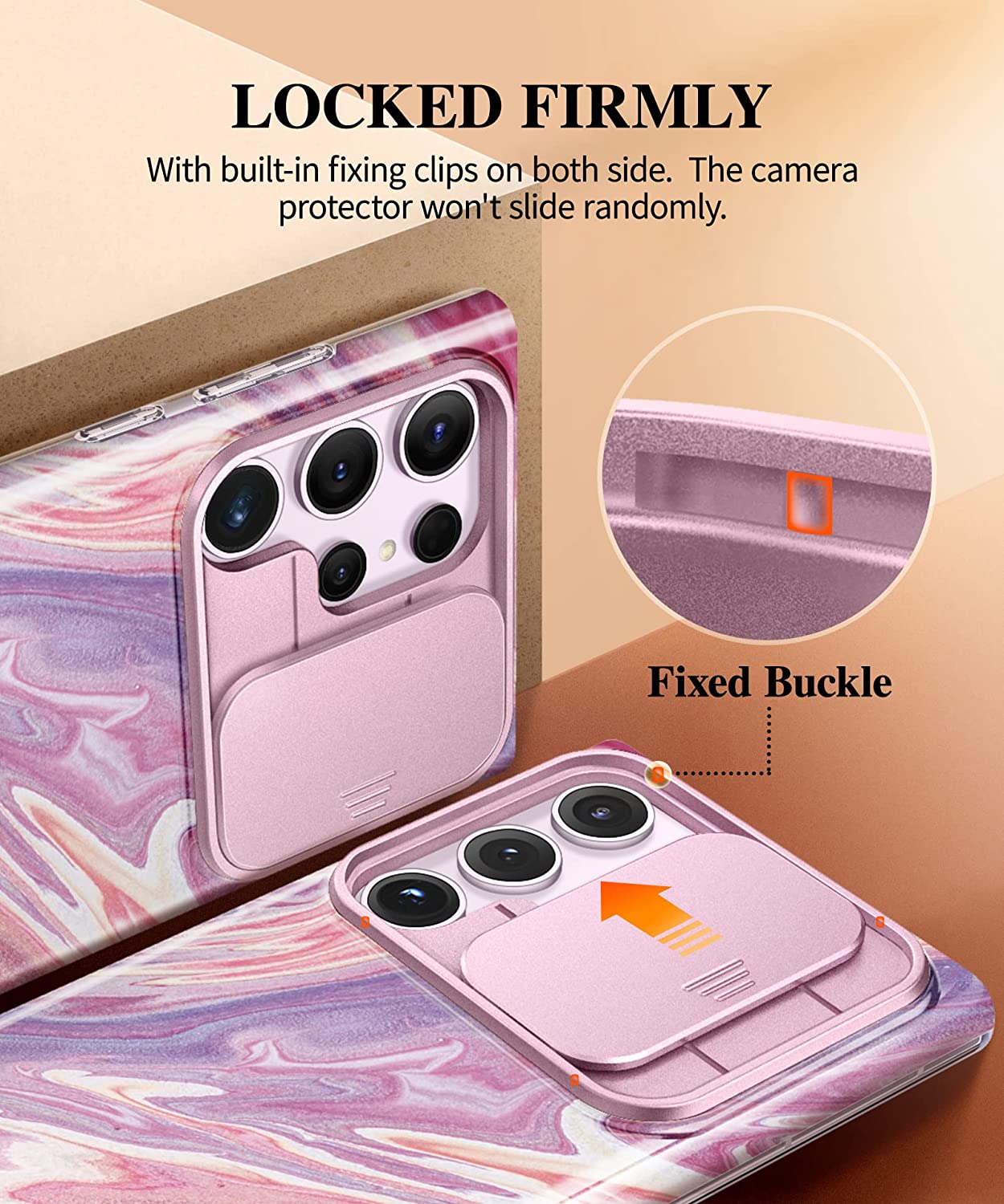 • [Upgraded Anti-Scratch Sliding Camera Lens Protector] The sturdy sliding camera lens cover and raised lip around the camera, can protect your phone camera from scratches and collision, and effectively prevent dust from entering the device. The fixing clips at both sides ensure that the protective camera cover will not slide or loosen at will during use.