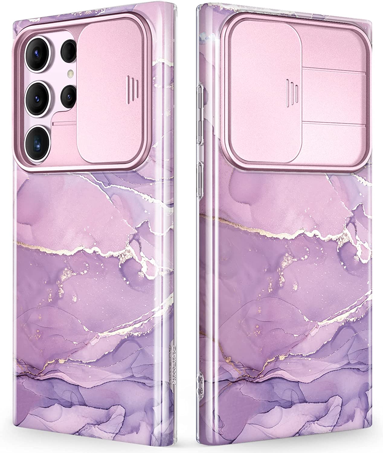 GVIEWIN Compatible with Samsung Galaxy S23 Ultra Case with Slide Camera Cover, [Military Grade Drop Protection] Slim Marble Design Shockproof Protective Phone Case Fit S23 Ultra 5G 6.8"(Burgundy/Gold)