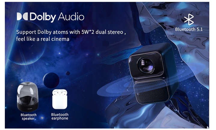 - Netflix-Certified& Dolby Audio Smart Projector : TT Smart projector comes with genuine Netflix, Prime Video, and YouTube apps built-in and supports Dolby Atmos with 5W*2 dual stereo. You can enjoy high-quality online movies and TV shows with hi-fi stereo surround sound that restores natural sound and creates an immersive viewing experience, just like being in a real cinema.