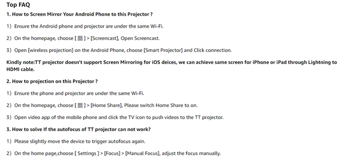 | Special Features | Netflix-Certified& Dolby Audio, Auto-foucs& 4D/4P Keystone Correction& Zoom Function, Native 1080P& 650ANSI& HDR10 &UHD support 4K, Fast Stable2.4G/5G WiFi & Bluetooth5.1 |